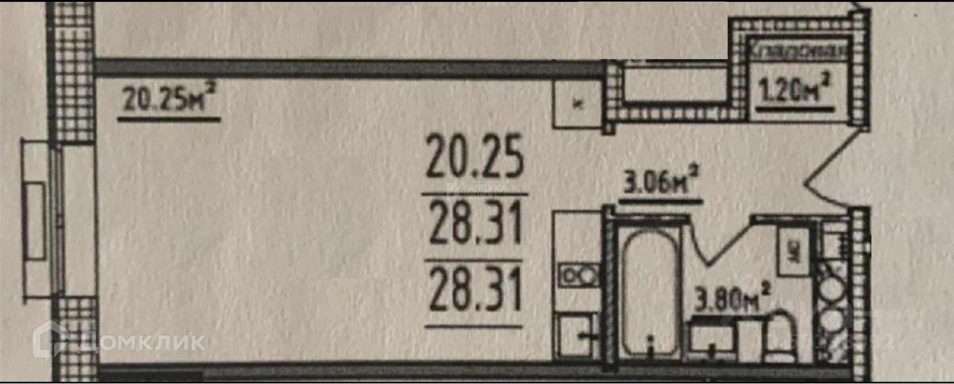 Общая площадь 28.3 м2