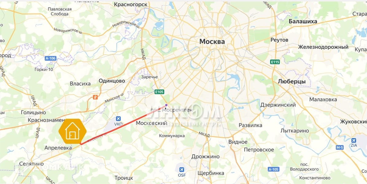 В центр Москвы Вы можете добраться за 20 минут на комфортной электричке. До МКАД 20 км по Киевскому или Минскому шоссе.