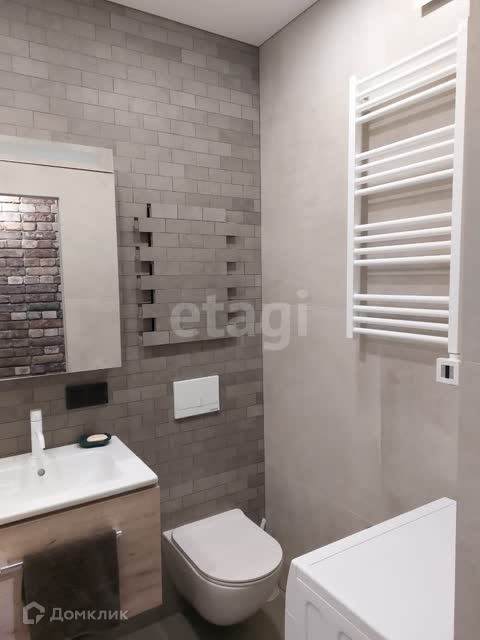 ВАННАЯ (3,2 м2) - ванна из искусственного мрамора (150*75 см.). Подвесной унитаз со встроенной в стену инсталляцией. Электрический полотенцесушитель. Раковина с подвесной тумбой, зеркальный шкафчик с подсветкой и розеткой, итальянские смесители, бесшумный вентилятор вытяжки. Натяжной потолок, Теплый пол. На Кухне и в Санузле установлены датчики системы защиты от протечек Neptun.