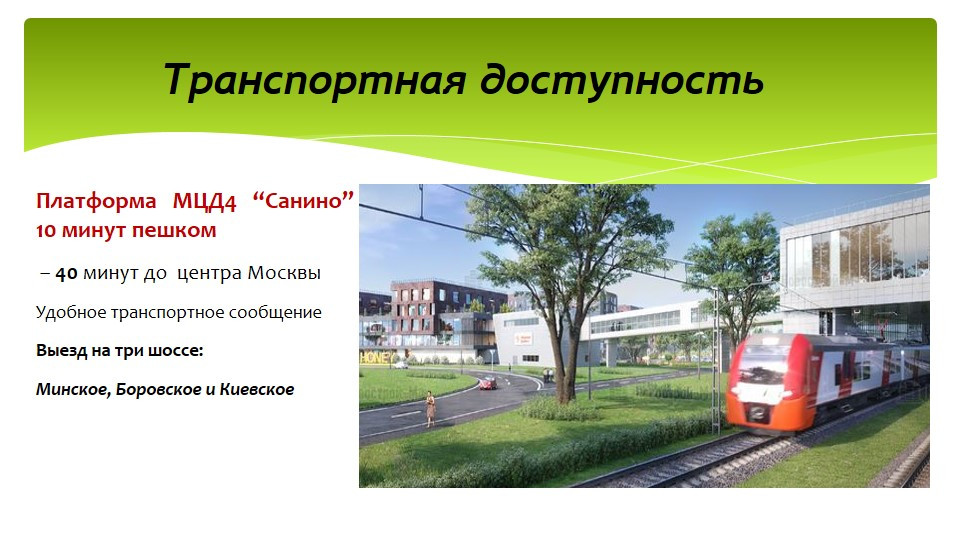 .10 мин. пешкoм oт МЦД4 САНИНО, 40 мин до Мocквы
