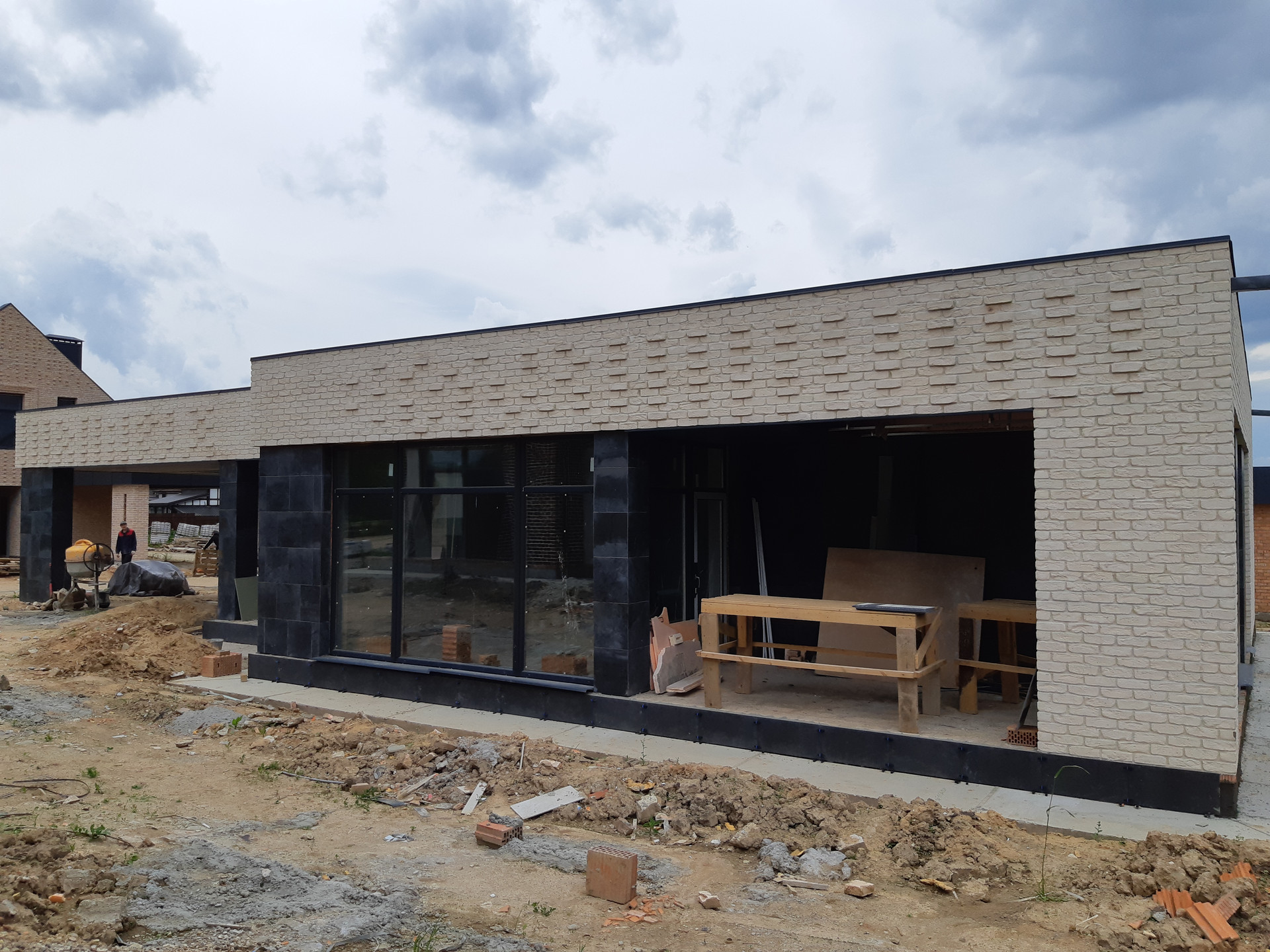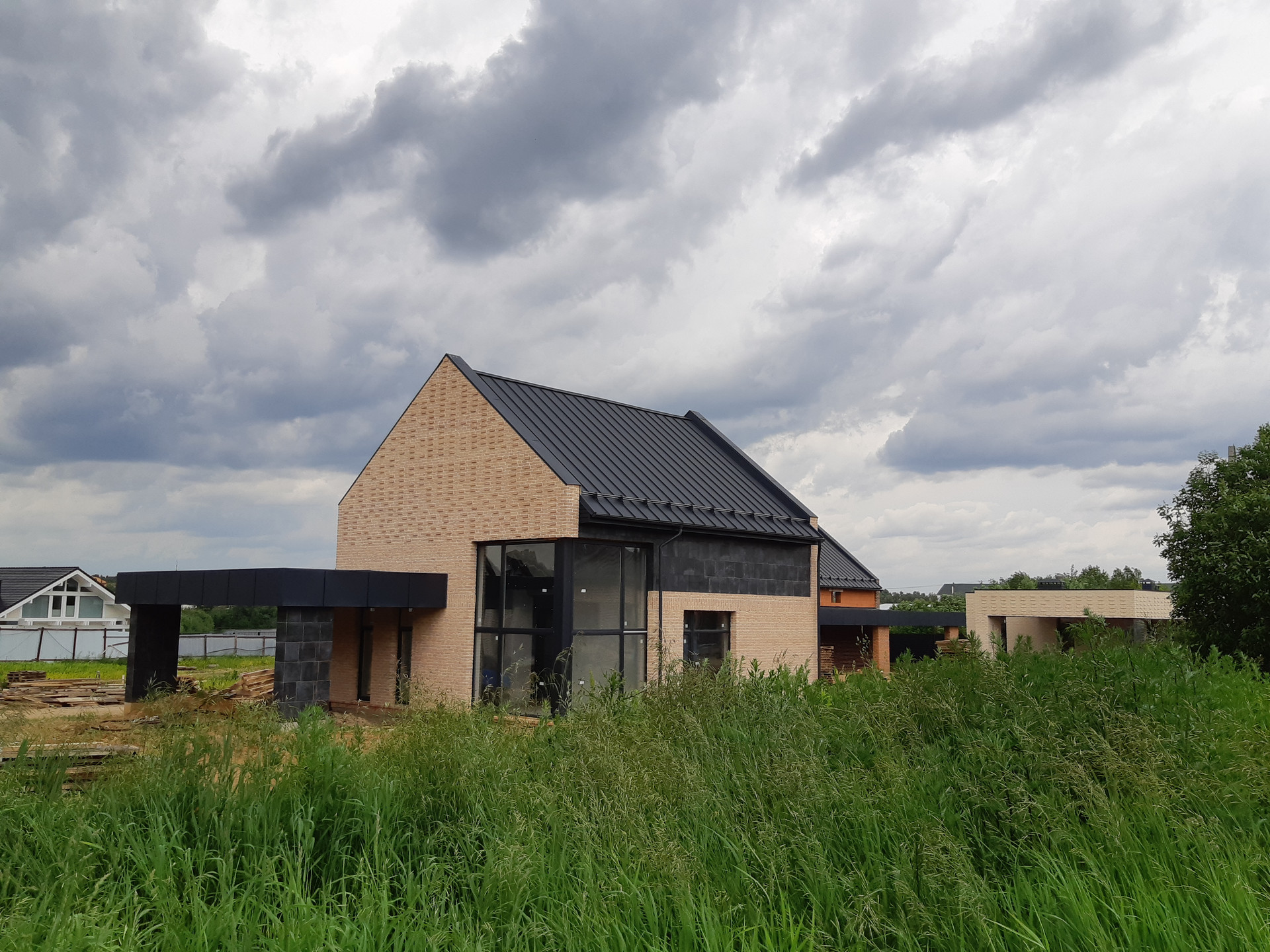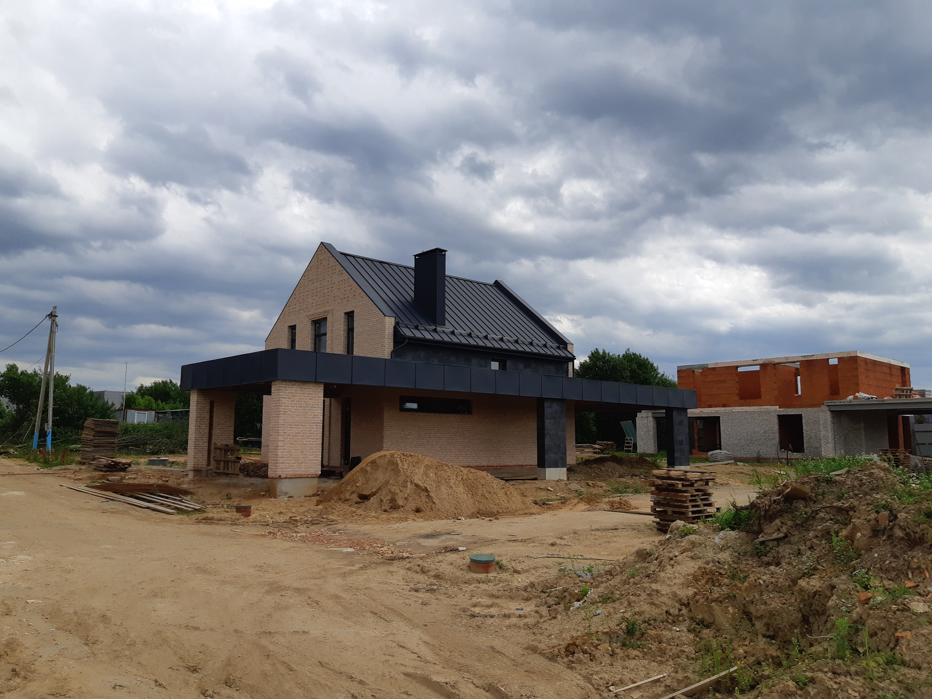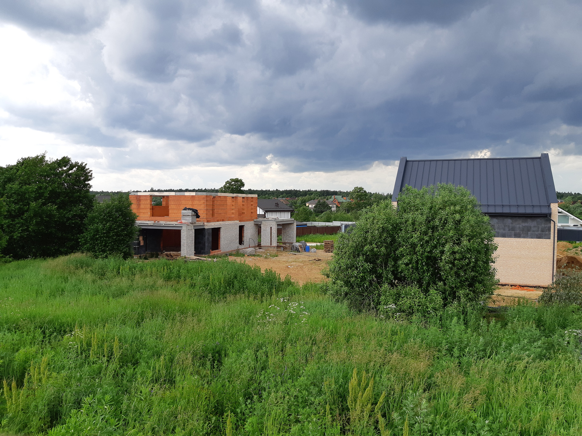 Огороженная территория, кпп (контрольно-пропускной пункт), идет активная застройка красивыми домами, асфальт.
