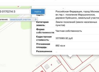Земельный участок (под жилую индивидуальную застройку), общей площадью 160 кв.м., к/н: 50:26:0170101:19, расположенный по адресу: г. Москва, вн.тер.г. поселение Марушкинское, д. Крекшино, ул. Озерная, з/у Владение 364/1. |