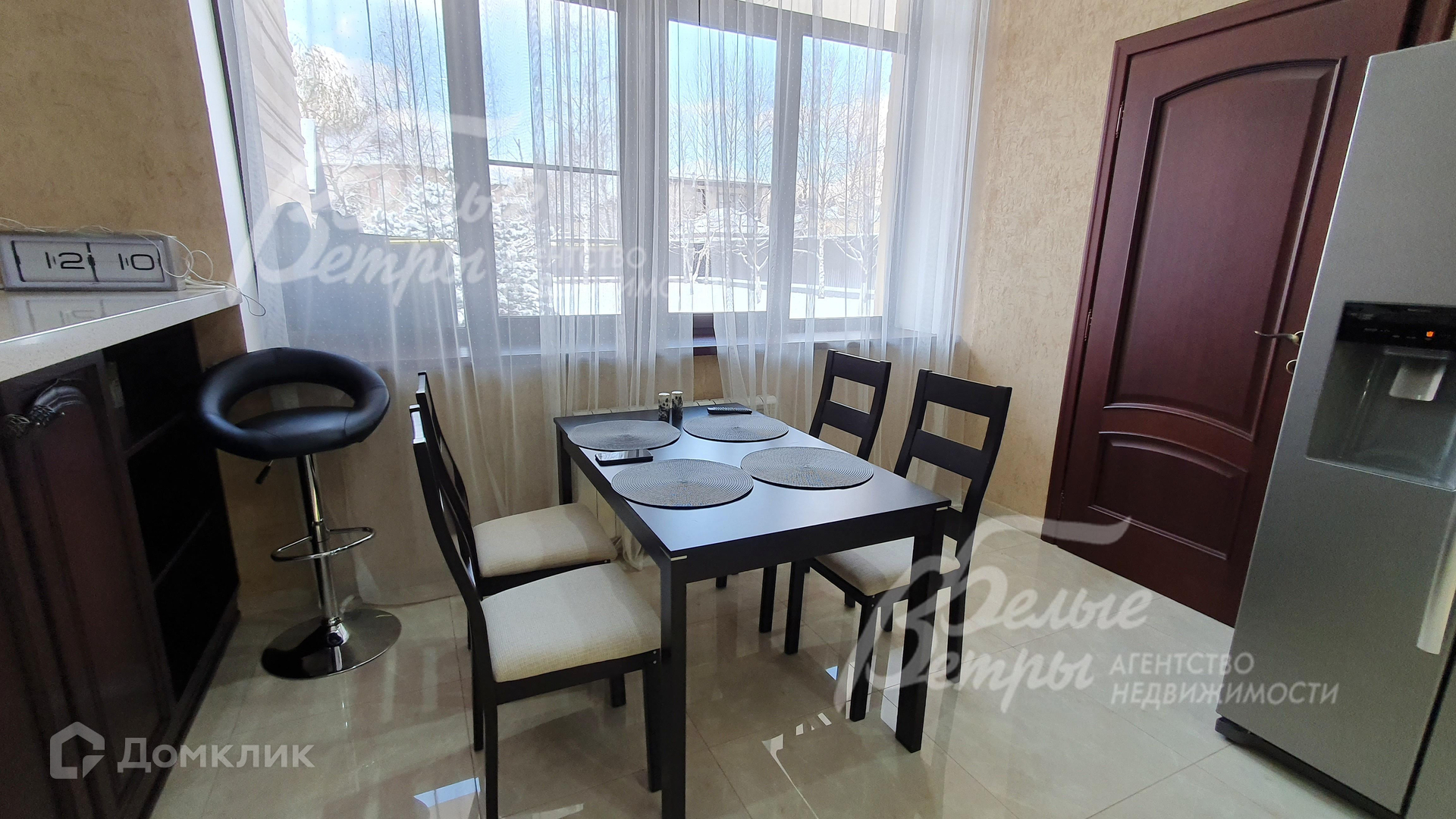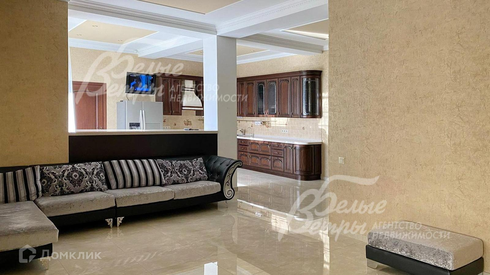 Мебель, оборудование: дом укомплектован качественной импортной мебелью и техникой. Установлен кухонный гарнитур с фасадами из массива дерева, барной стойкой и встроенной техникой: холодильник Daewoo (Side by side), духовой шкаф, электрическая варочная панель Siemens, посудомоечная машина BOSСH, вытяжка, микроволновая печь. Стиральная и сушильная машины BOSСH, телевизоры в кухне гостиной, спальне. В спальнях гарнитуры с широкими двуспальными кроватями с мягкими изголовьями, тумбами, шкафными группами и комодами. В гостиной большой угловой диван, тумба под ТВ. В прихожей вместительный шкаф-купе с зеркалами. Везде карнизы, тюль, шторы, люстры, напольные и настольные светильники. Стены украшены картинами. Ротанговая мебель на террасе..