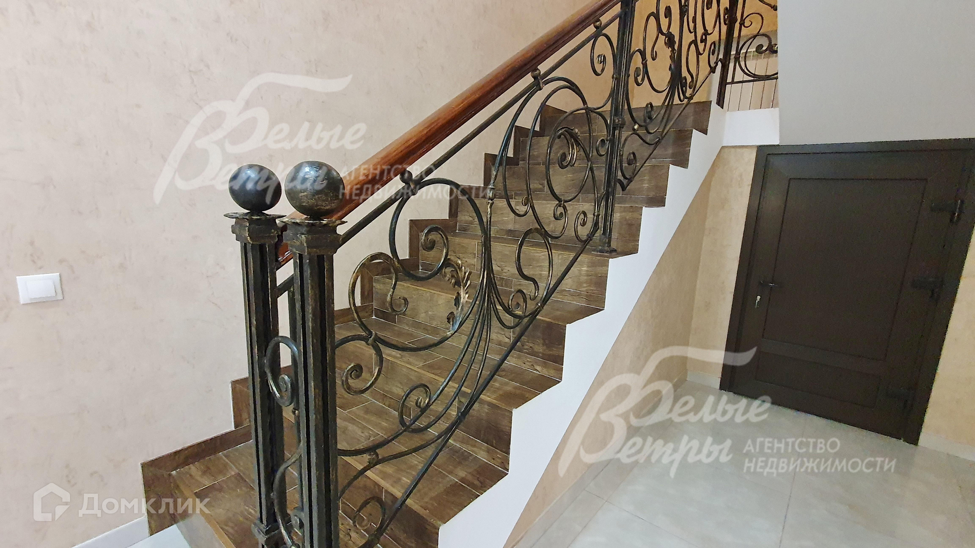 Внутренняя отделка: выполнена отделка в современном стиле в нейтральных тонах. Стены покрыты декоративной штукатуркой с эффектом мокрый шелк, обои, в санузлах - плитка. Полы: в комнатах - ламинатная доска Tarkett, в прихожей, гостиной, кухне/столовой, террасе - керамогранит, в санузлах - коллекционная плитка. Потолки многоуровневые из гипсокартона со встроенным освещением. Двери Union (Италия) - темное дерево..