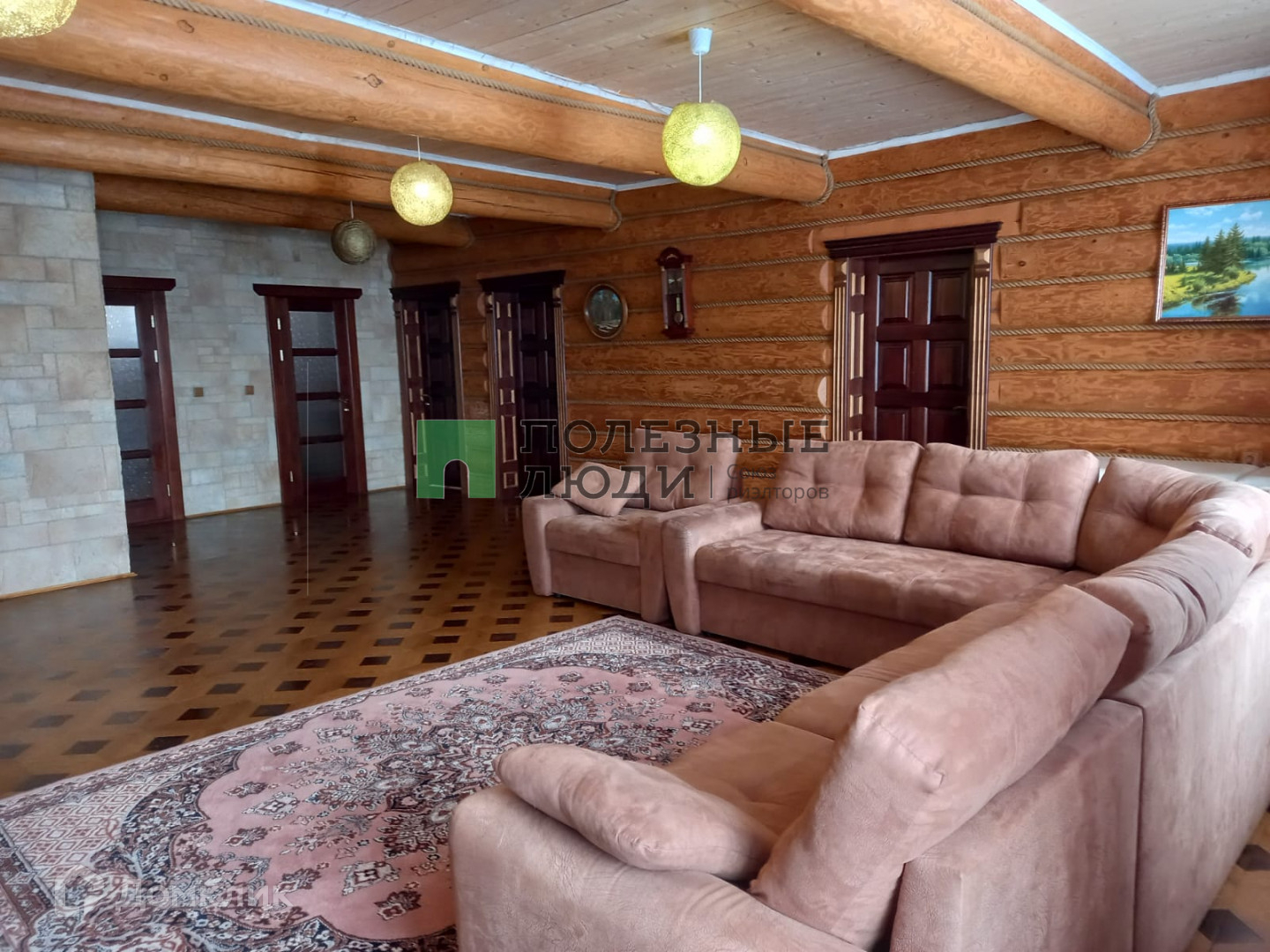 Строительство дома завершено в 2015 году.Индивидуальный проект, в строительстве которого использовался Кировский лес (сосна рубленная) средний диаметр бревна 30 см. Внутренняя отделка дома проведена с использованием высококачественных, экологичных отделочных материалов. Инженерное обеспечение дома выполнено на самом современном уровне Жилой дом общей площадью 294 квадратных метров.первый этаж, он же цокольный 147 кв. м., материал стен-кирпич:- кладовая 12 кв. м.,- бойлерная 15 кв. м., установлены 2 котла, электро- и газовый.- два просторных помещения свободного назначения, в которых при желании разместятся теннисный стол, тренажёры, беговые дорожки, вело, настольные игры.Второй, основной жилой этаж, рубленное бревно:-большая, просторная гостиная на 50 кв. м. - три комнаты по 12 кв. м., из одной из комнат есть выход в зимний сад.- просторная кухня-столовая со встроенной техникой (вся встроенная техника остается новому собственнику.- два сан. узла.Вся отделка сделана из натуральных экологичных, материалов: дерево, камень. На полу ламинат премиум класса. Межкомнатные двери изготовлены под заказ из массива благородных пород дерева.Так же имеется вход на чердак, которым не пользуются, можно сделать полноценный мансардный этаж.Отдельного внимания стоит лестничный марш, он вынесен отдельно от жилого помещения, соединяет первый не жилой этаж, второй-жилой и третий-чердак. Данный лестничный марш отапливаемый и выполняет роль холла и оранжереи, материал стен кирпич, внутренняя отделка стены глазированный кирпич, пол- ламинат. Сама лестница сделана из массива дерева.Баня, теплый предбанник (раздевалка), моечная 10 кв. м., парная 10 кв. м., с выходом в беседку.Гараж на 2 машины со смотровой ямой, так же имеется генератор на случай отключения электричества.- гостевой домик 30 квадратов для размещения гостей со всеми удобствами.- участок солнечный, закрыт от ветра зеленью, забором, автоматические въездные ворота, брусчатка во дворе.На участке имеется пруд 800 квадратных метров, оснащенный системой фильтрации. Раз в год производится чистка пруда мотопомпой. Пруд заселен рыбой: карп (за то время , что живет в пруду, уже достиг больших размеров), карась, в прошлом году была форель, нынче еще не попадалась. Можно организовать небольшой бизнес в виде платной рыбалки.