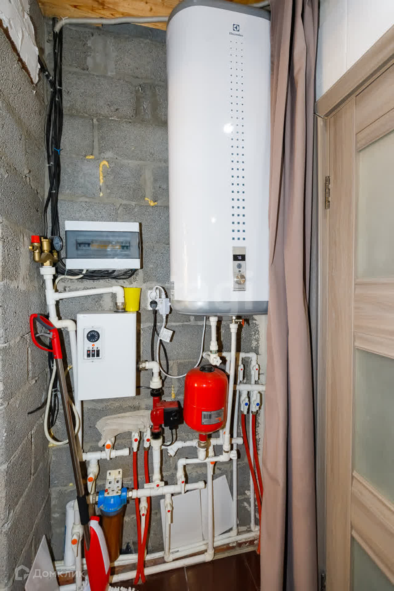Дом отапливается за счет электрического котла, есть возможность подключения к газу (проходит по улице).