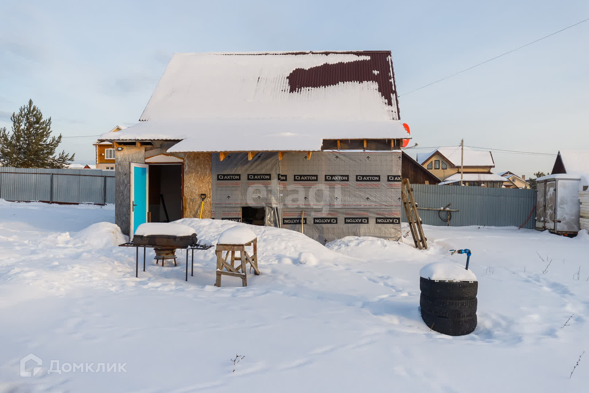 Стены выполнены из керамзитоблока и утеплены снаружи пеноплексом.