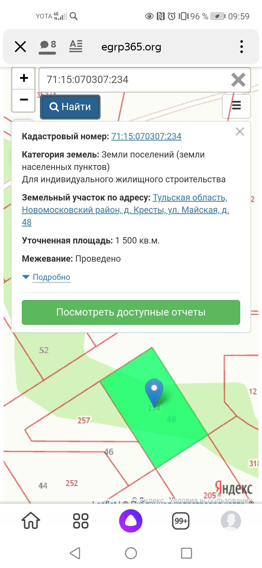 Продам участок ИЖС 15 соток. В д. Кресты Новомосковского района, ул. Майская, 48. Участок не около дороги, а это плюс, особенно для семьи с детьми или пожилых людей. Кадастровый номер 71:15:070307:234 Рядом гипермаркет "Линия", автовокзал, "магнит", аптеки и сбербанк, построен детский сад, который уже открылся, планируется постройка многоэтажных домов, так же неподалёку есть все необходимые магазины, до города 5 минут. Рядом уже имеются застроенный участки, где проживают люди. Все коммуникации (свет, вода, газ) имеются рядом.  Собственник. Все вопросы по телефону. Уместен торг.