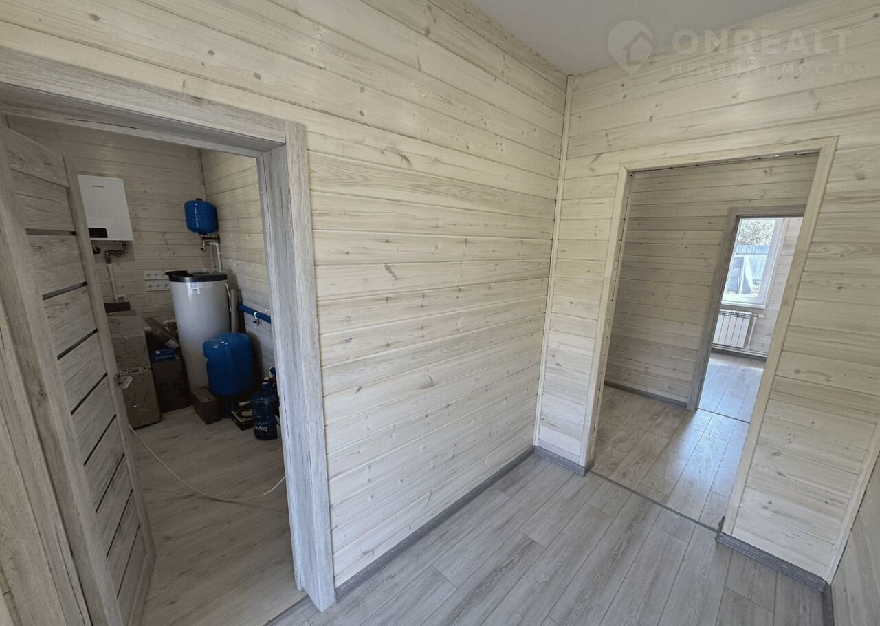 Фотографии дома реальные. Дом в один этаж. Потолки 2.9 м. Построен по финско-американской технологии — доска камерной сушки, утепление RОСКWООL, RЕНАU окна, кровля — металлочерепица. Стиль дома классический - 3 комнаты, 2 санузла, кухня-гостинная 25.8 м², терраса 29 м². Радиаторное водяное отопление и электрика, межкомнатные двери. Дом готов к заселению!