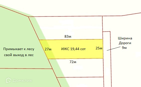 Одна сторона участка примыкает к сосновому бору.
