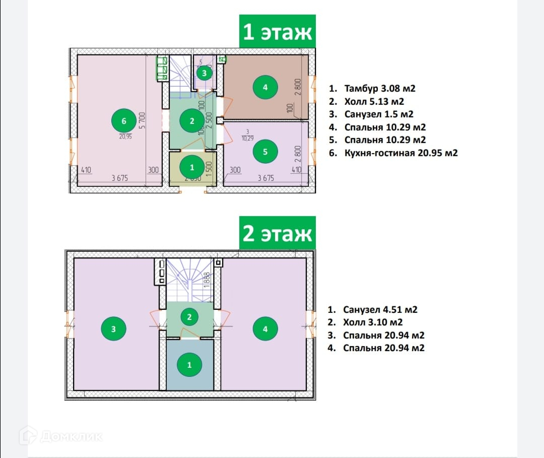 2 этаж: холл, 3 спальные комнаты, санузел.
