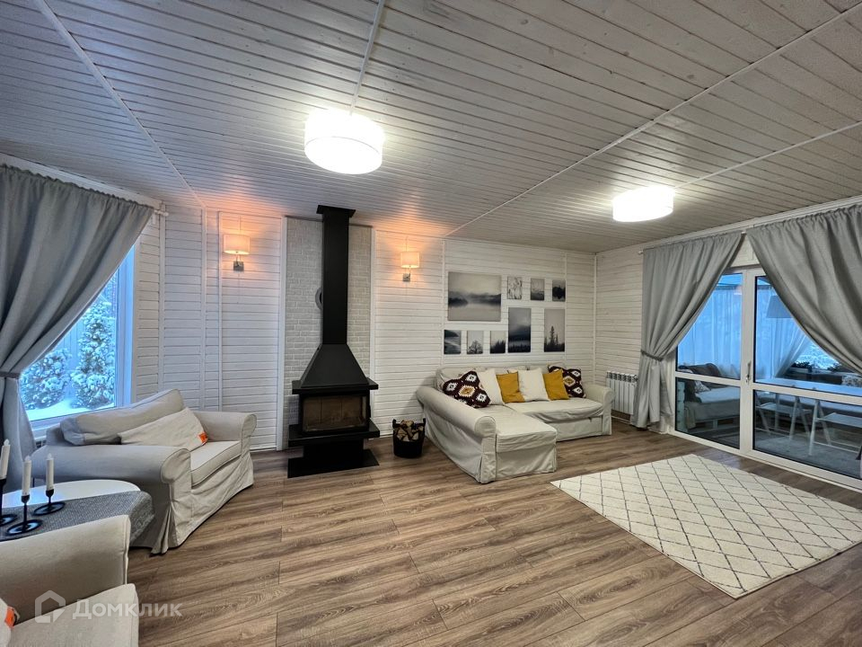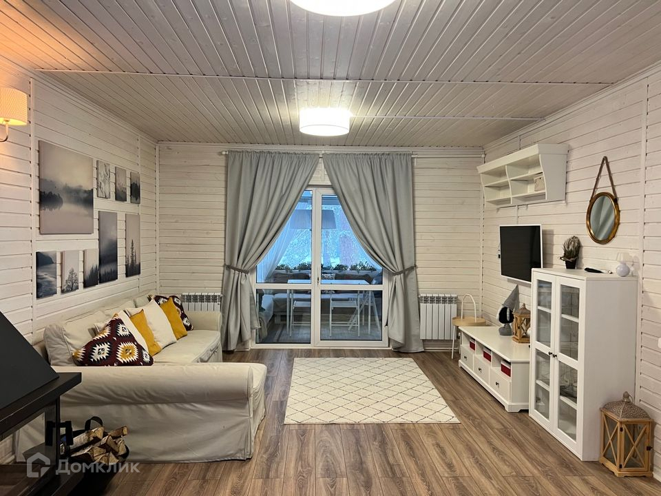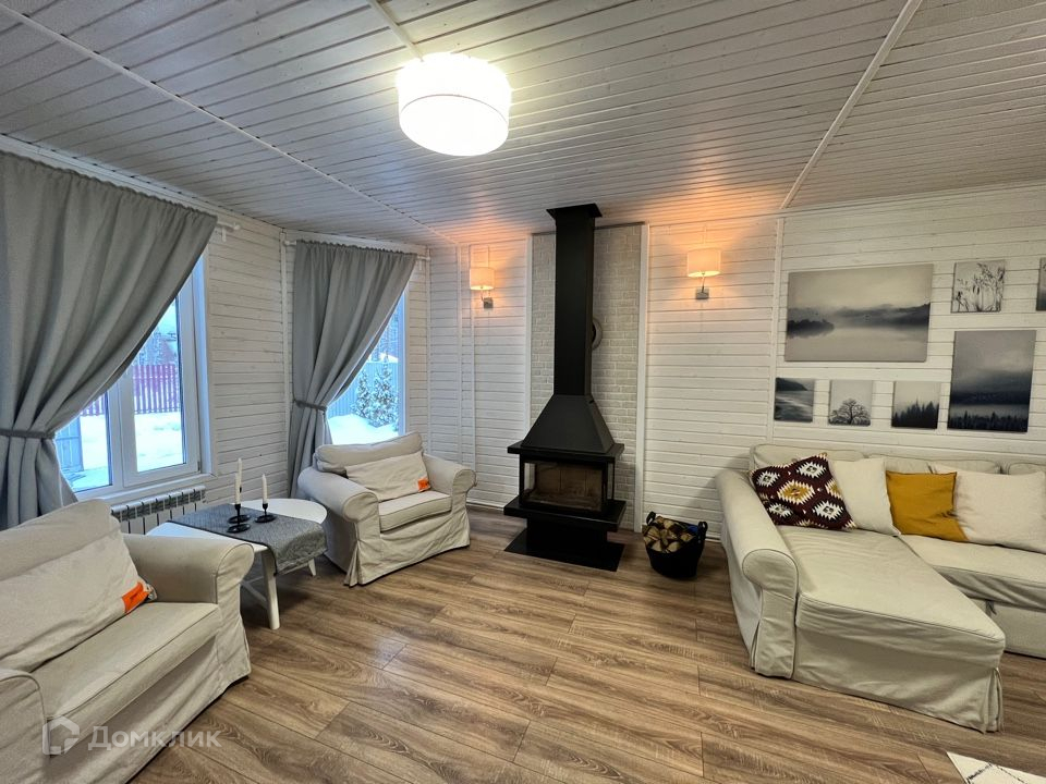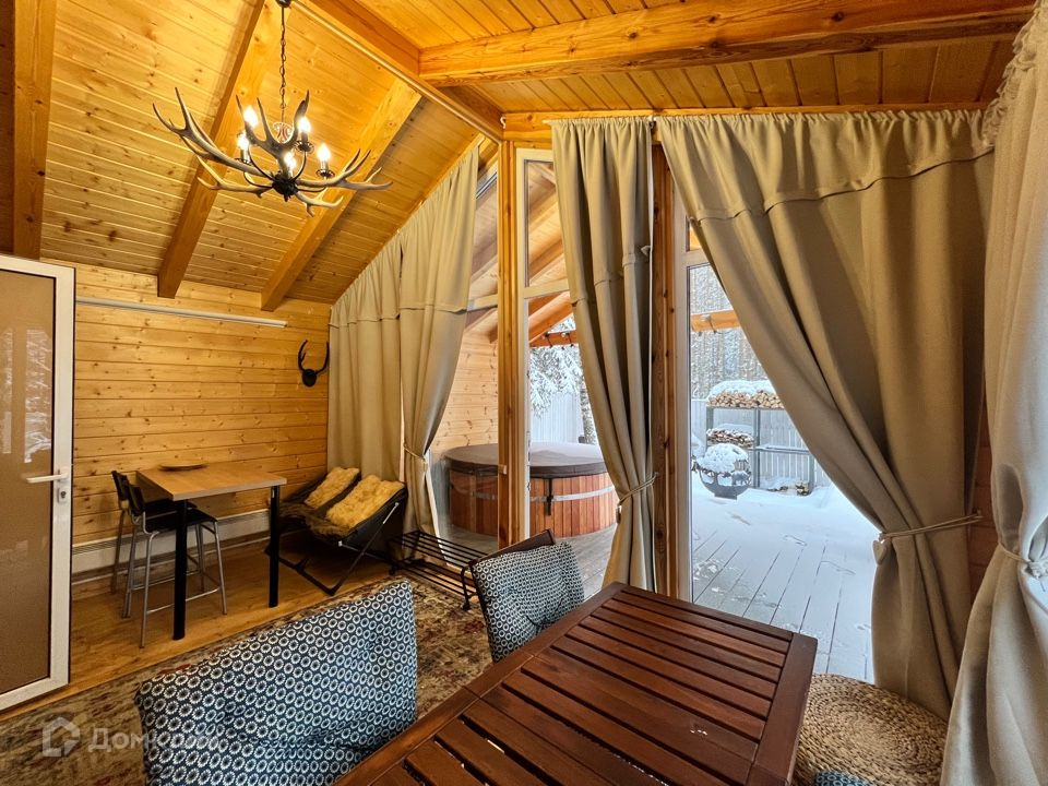 1 этаж отдельно изолированная кухня со всей необходимой бытовой техникой (холодильник, инвекторная плита, духовка, микроволновая печь), гостиная с действующим камином на дровах, зона отдыха и ТV пространство и санузел со всеми удобствами. Большим плюсом является просторная обогреваемая веранда.