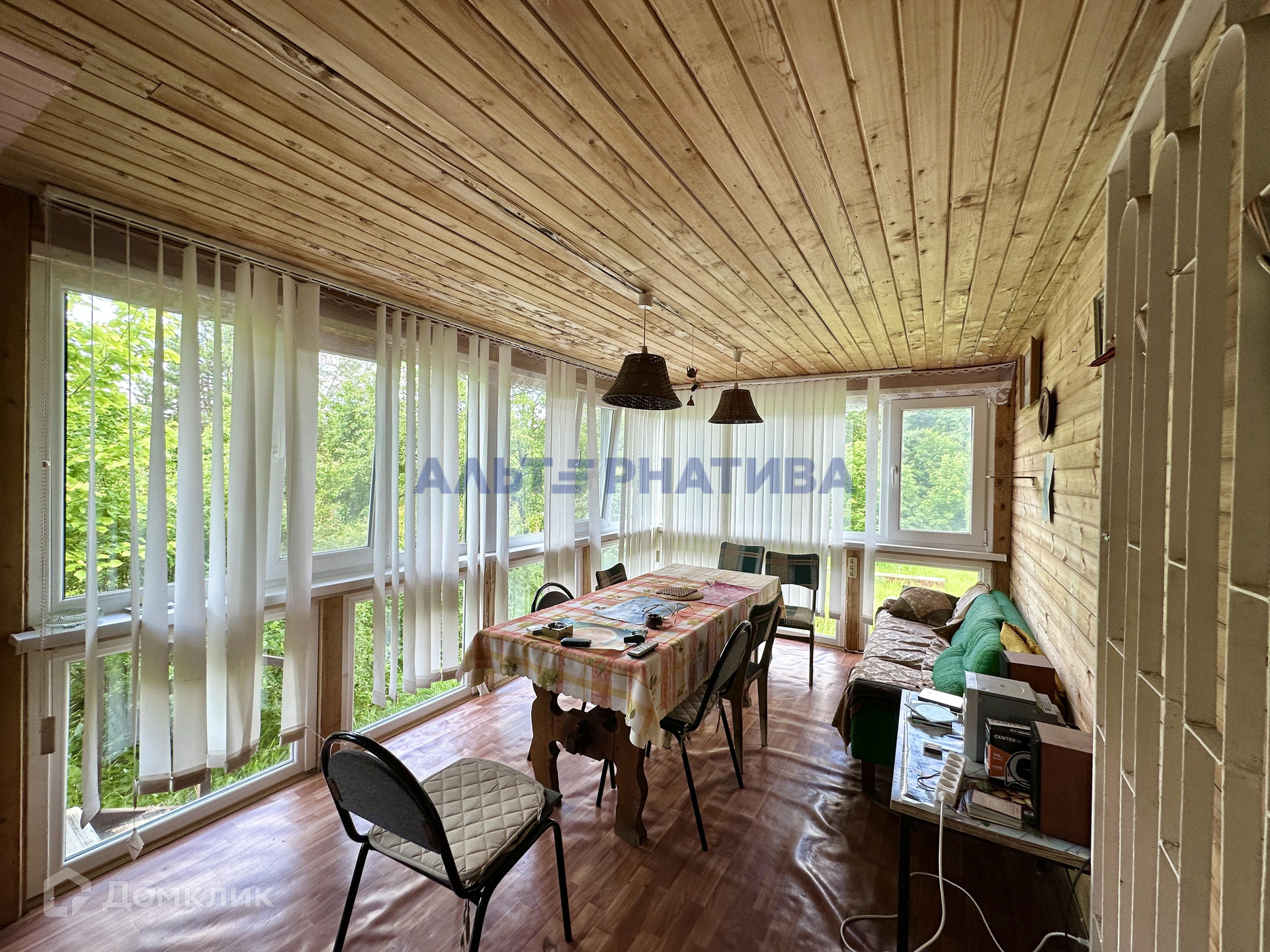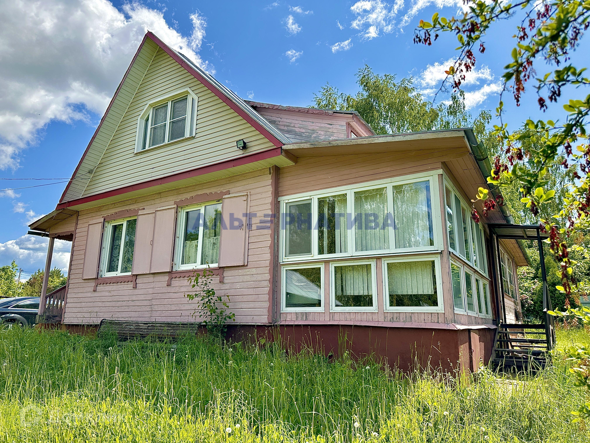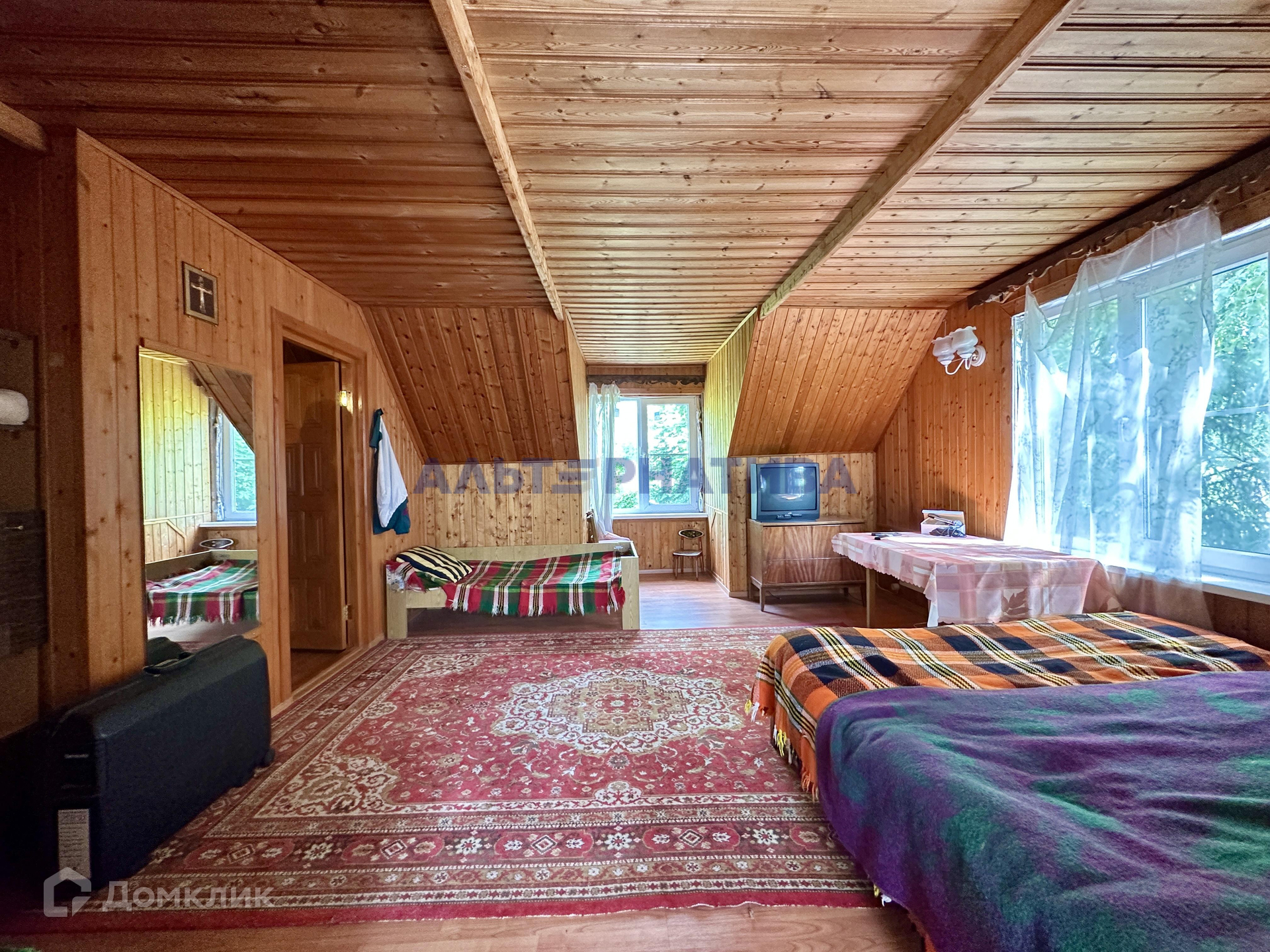 В доме 5 комнат (2 на первом этаже, и 3 на втором). На  первом этаже расположены кухня, санузел, проходная гостиная, две большие застекленная веранды. В дом есть возможность попасть с 3 сторон.