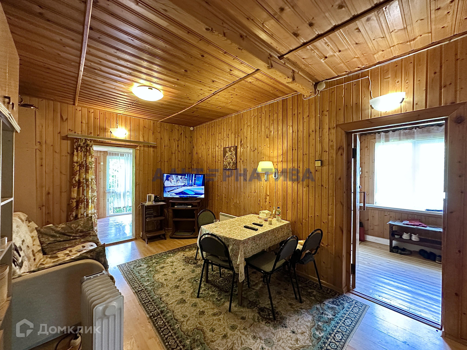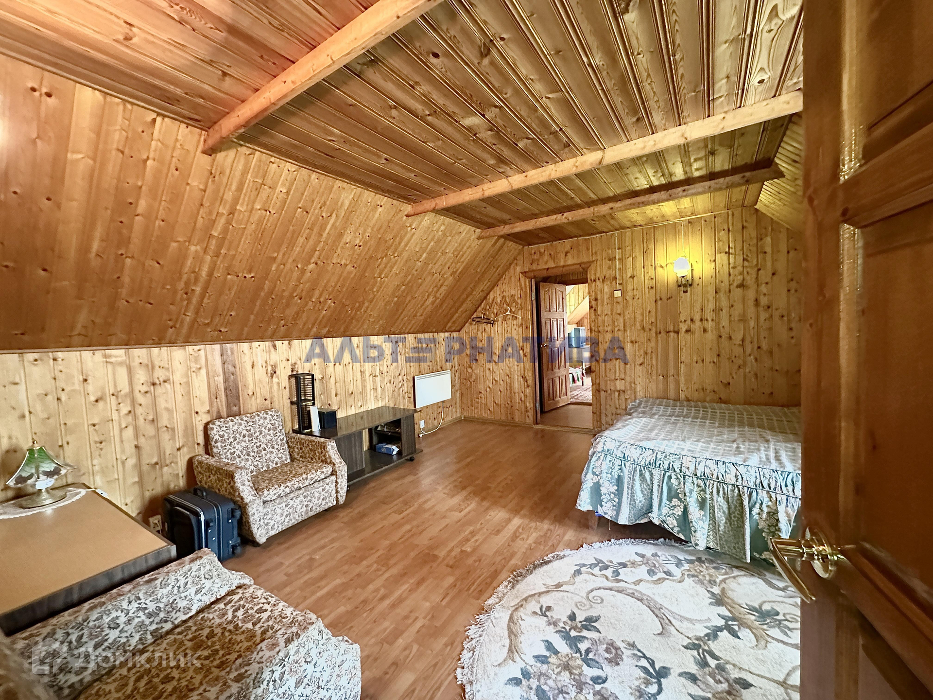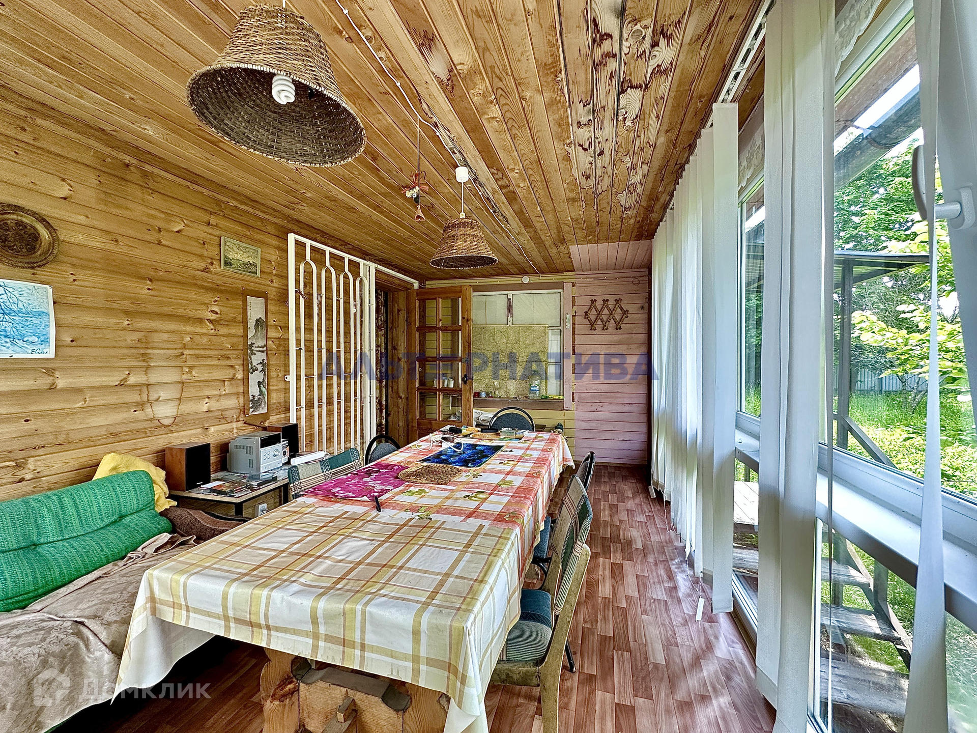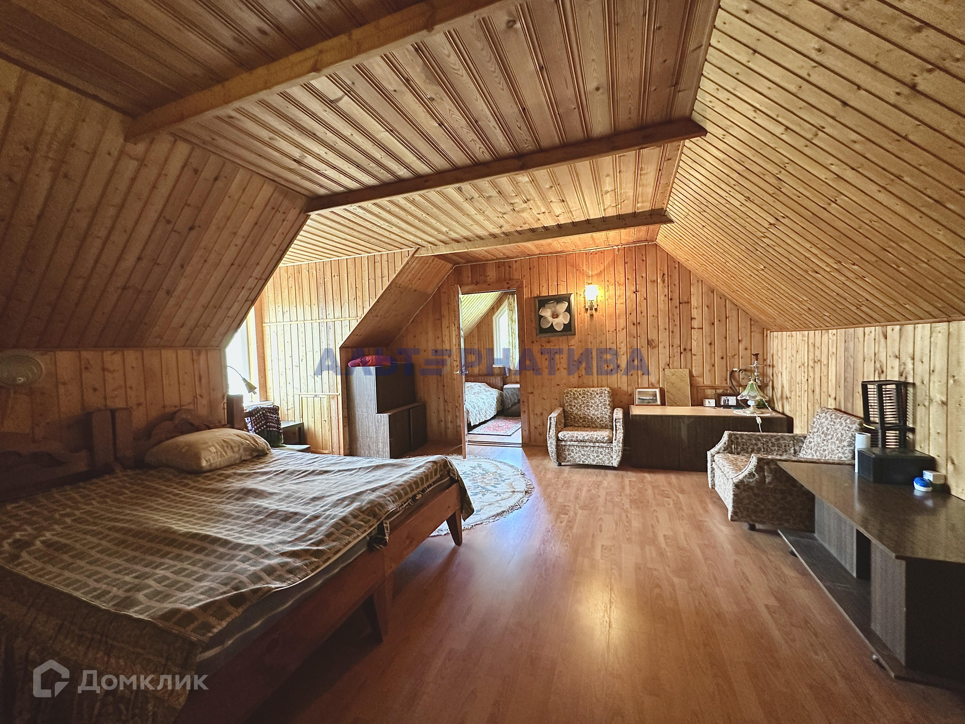 В доме 5 комнат (2 на первом этаже, и 3 на втором). На  первом этаже расположены кухня, санузел, проходная гостиная, две большие застекленная веранды. В дом есть возможность попасть с 3 сторон.