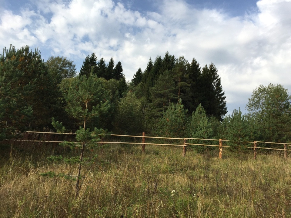 Участок ровный, сухой, огорожен, растут красивые сосны и ели, 250 метров до озера Селигер.