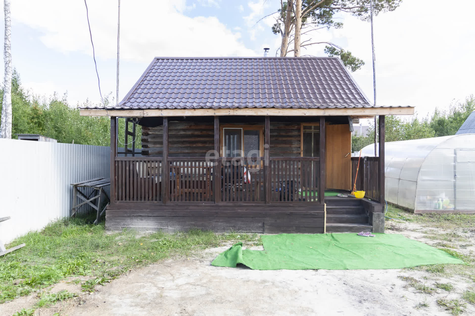 На участке пышатся деревья и кустарники, а перед вашим взором раскинулась великолепная сосна. Вы можете наслаждаться уединением на террасе или посещать новую баню на территории.