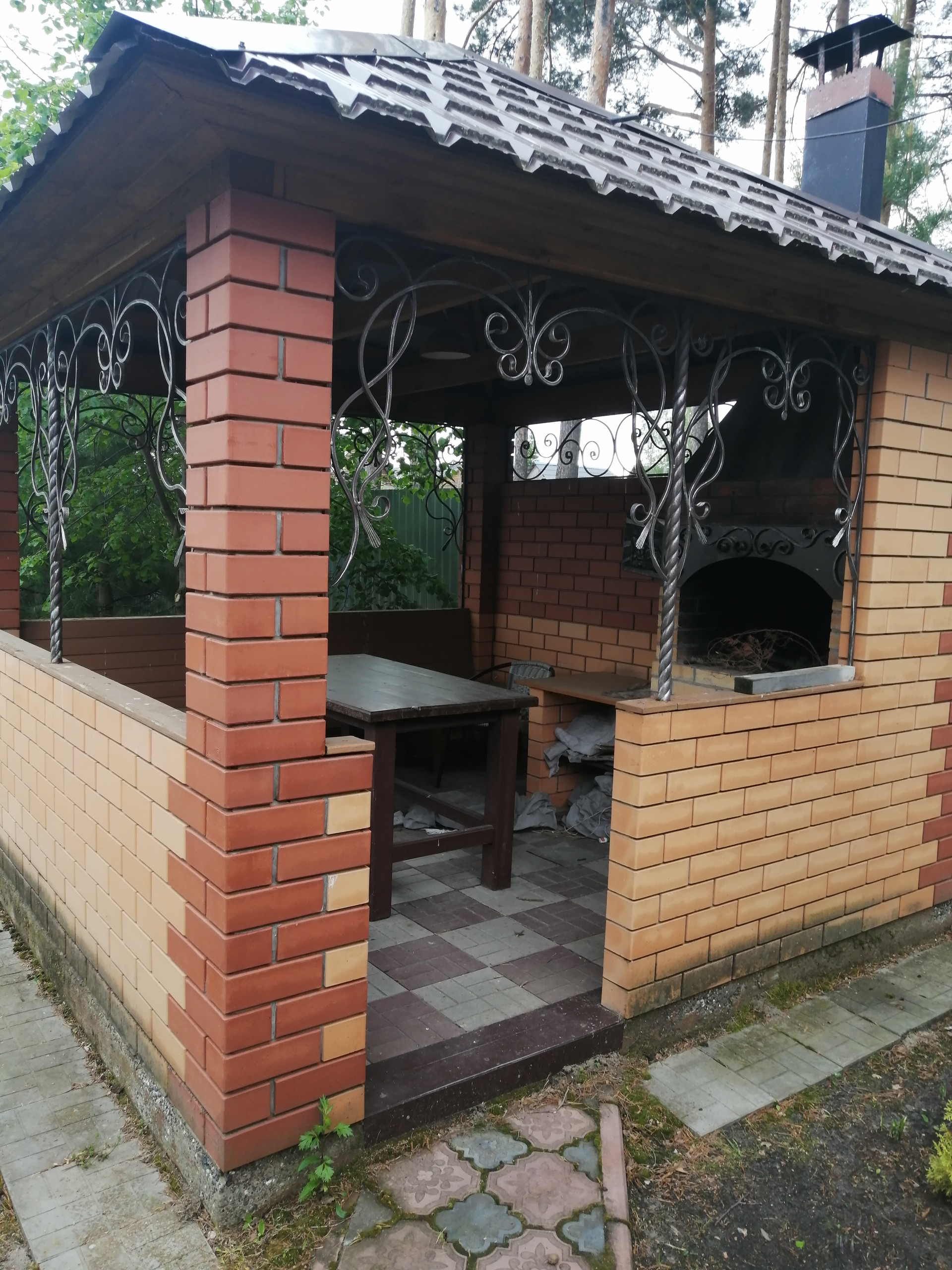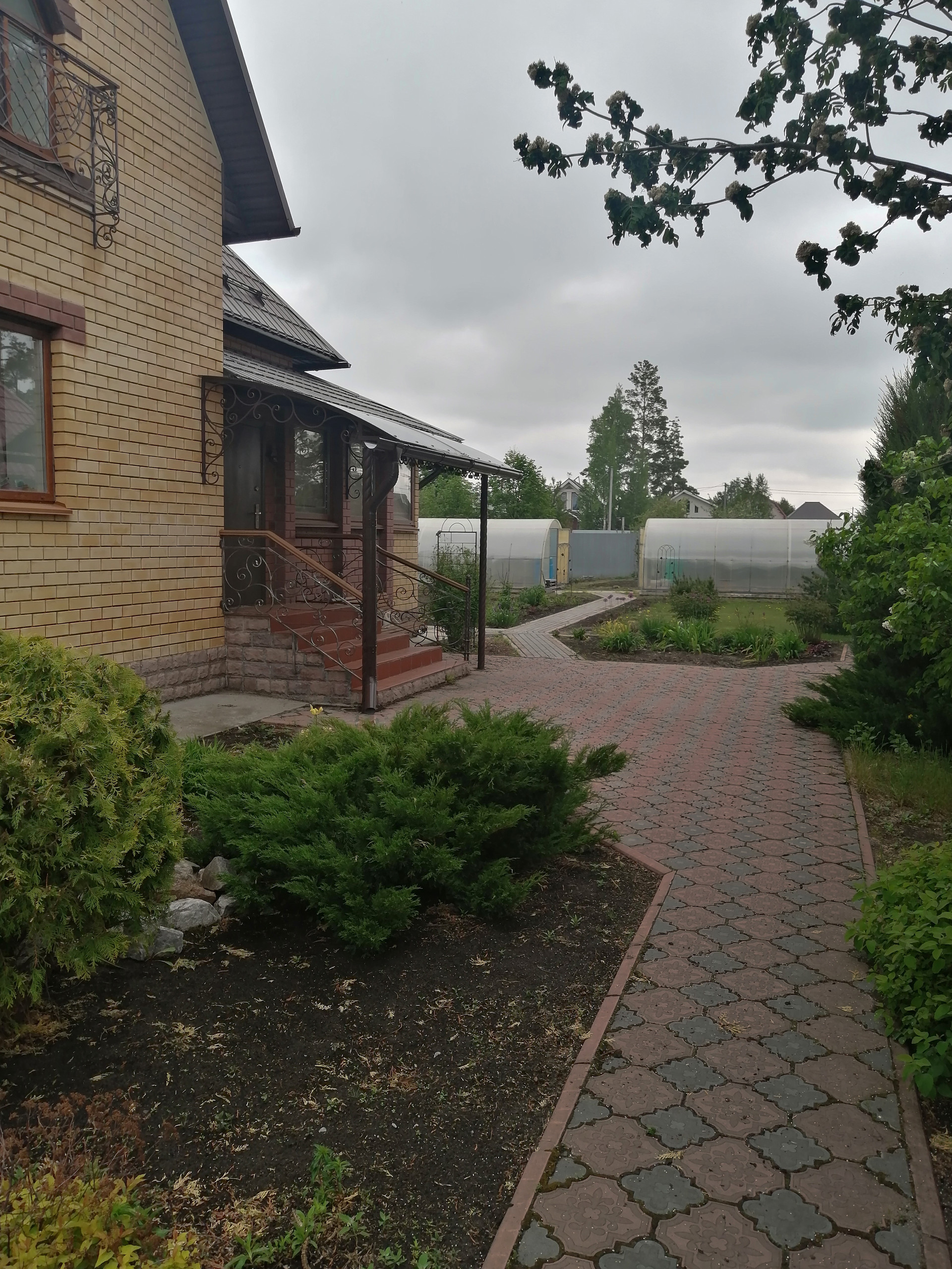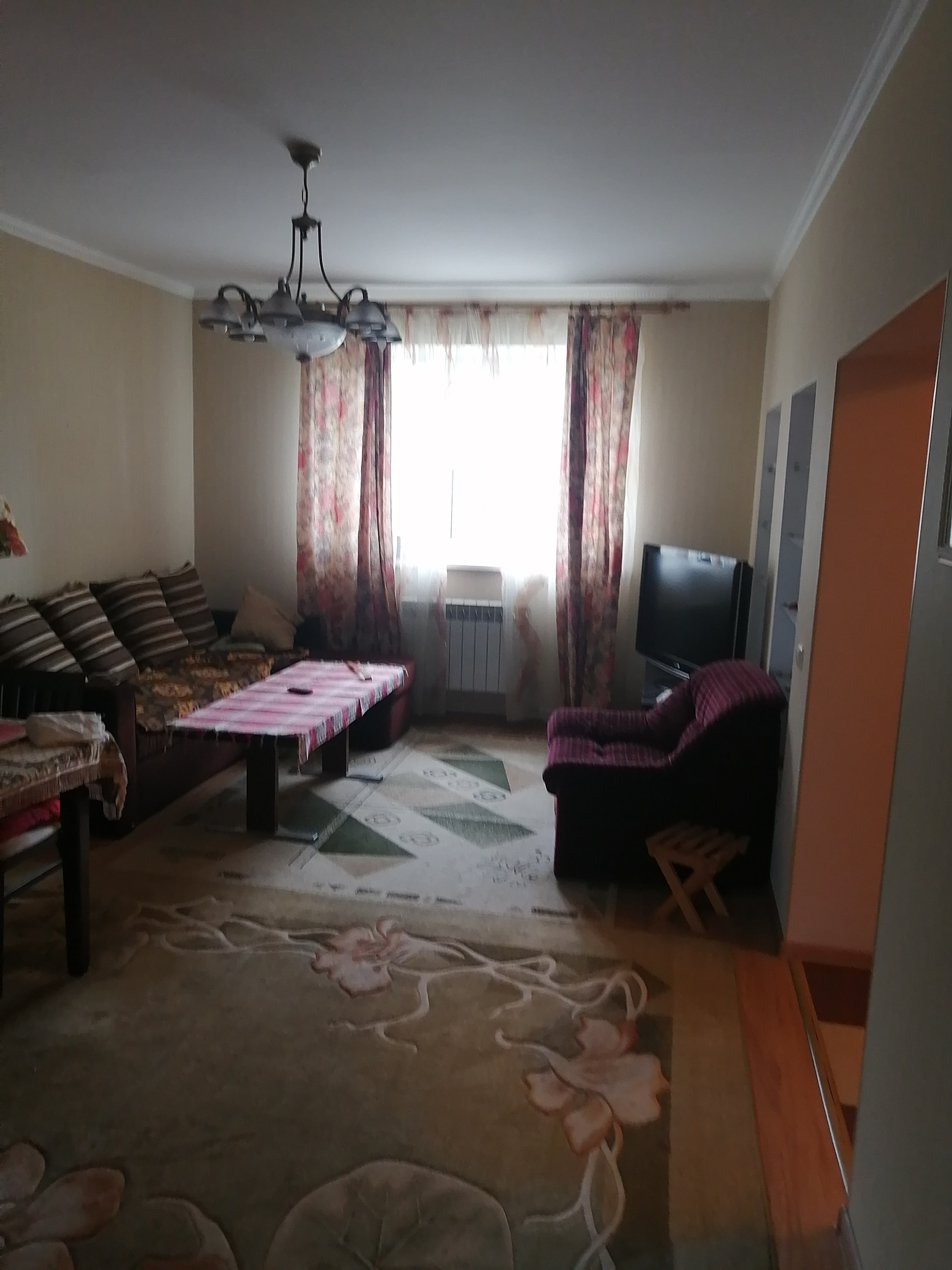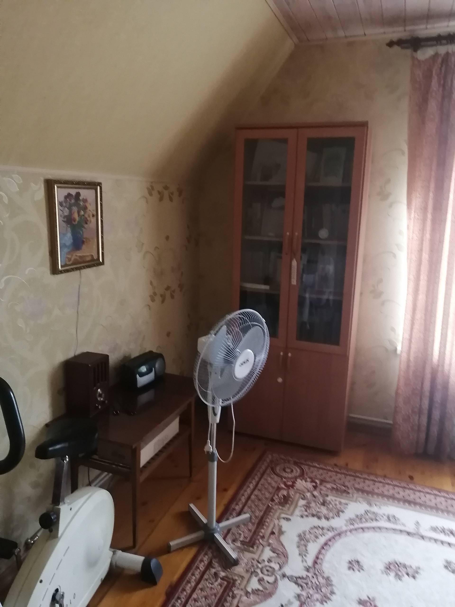 Дом построен из керамзитоблоков, с утеплителем и обложен кирпичом. На первом этаже гостиная, кухня и спальная комната. На втором этаже гостиная и две спальни.