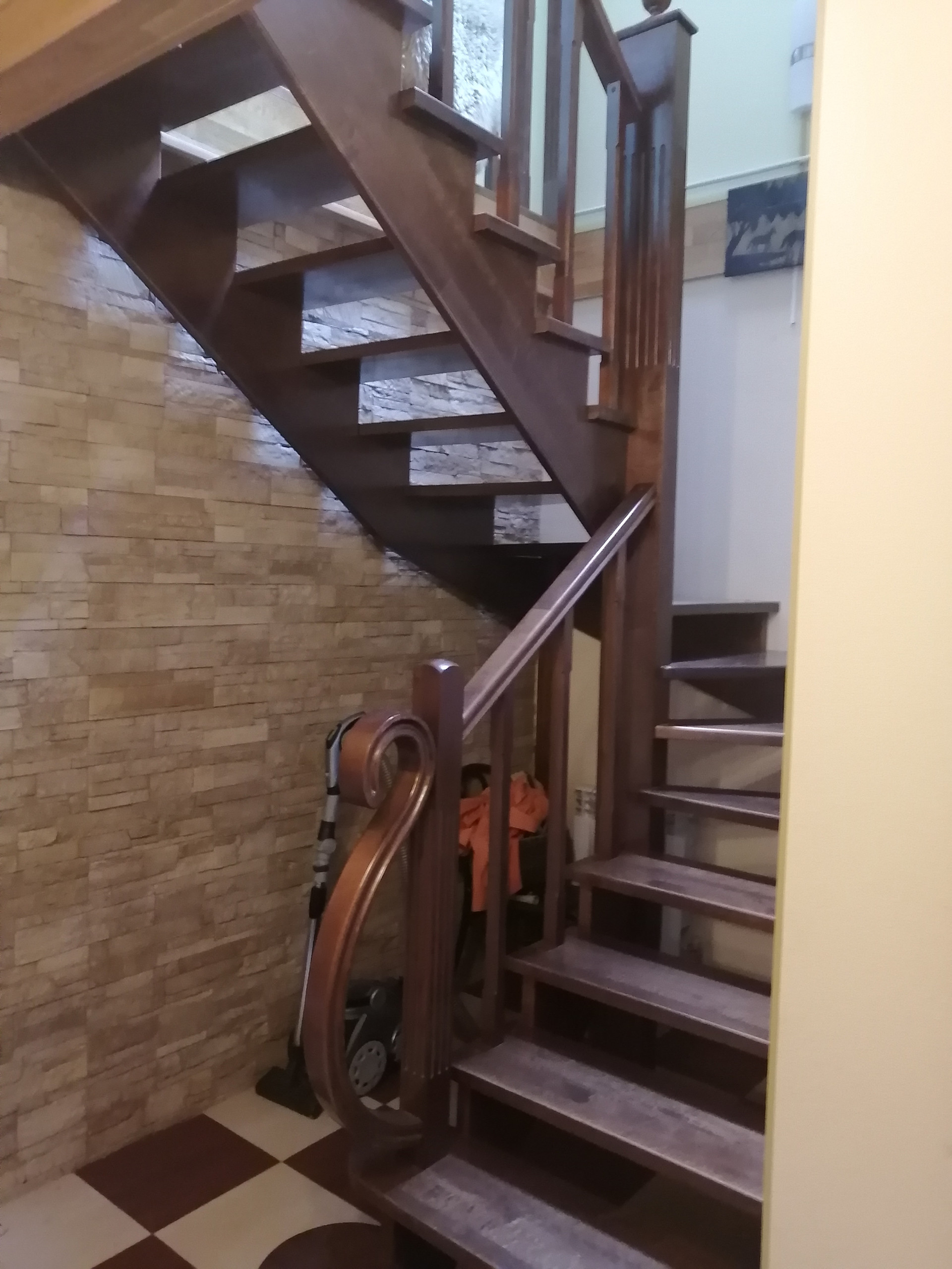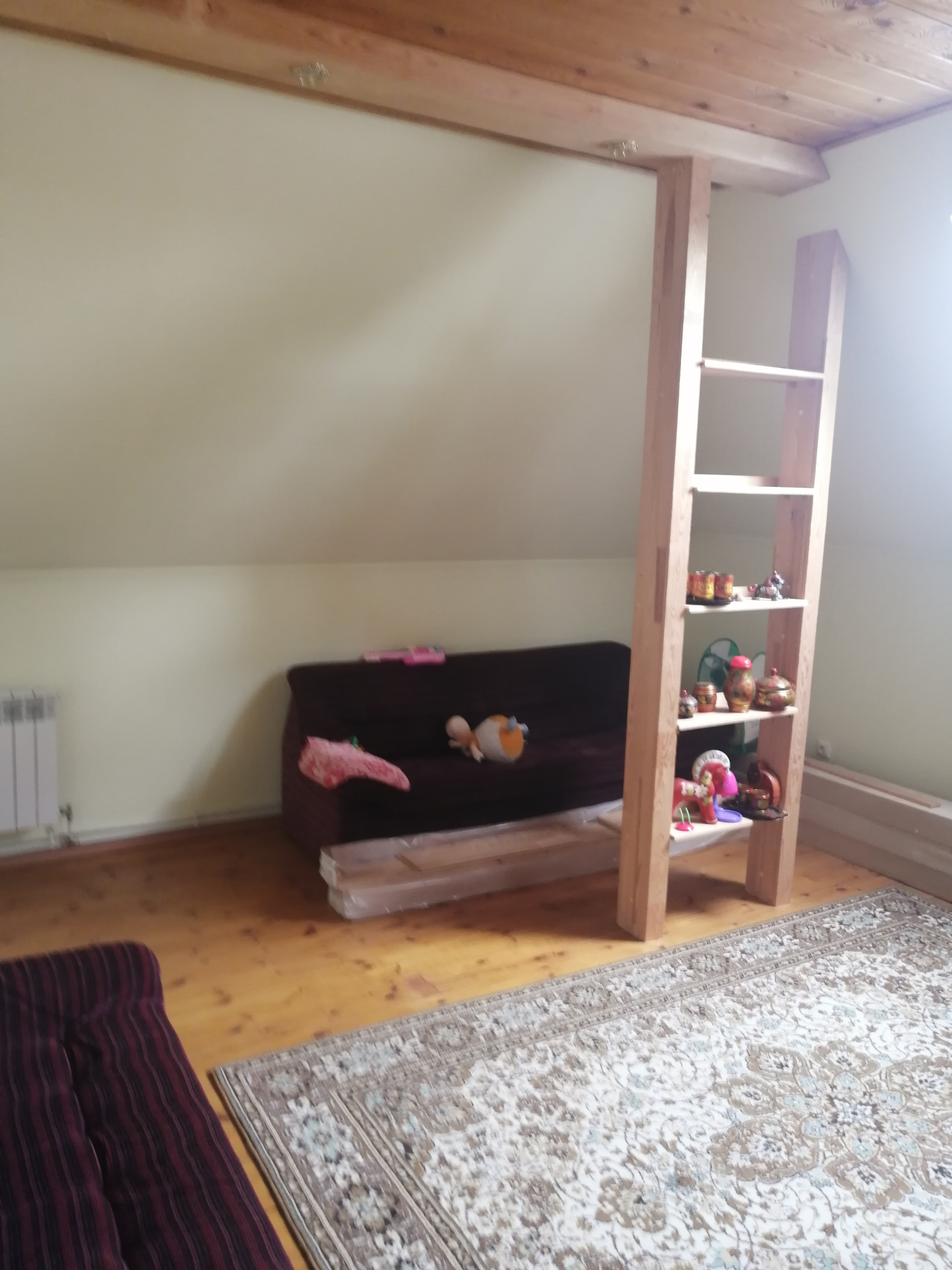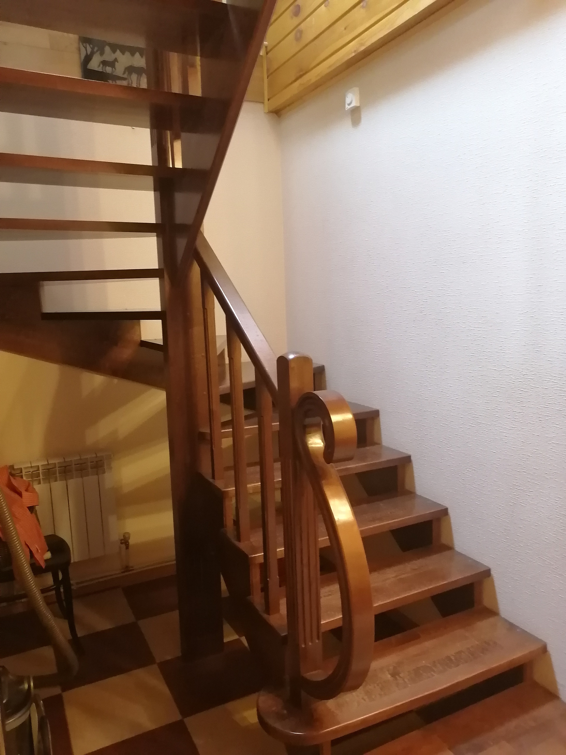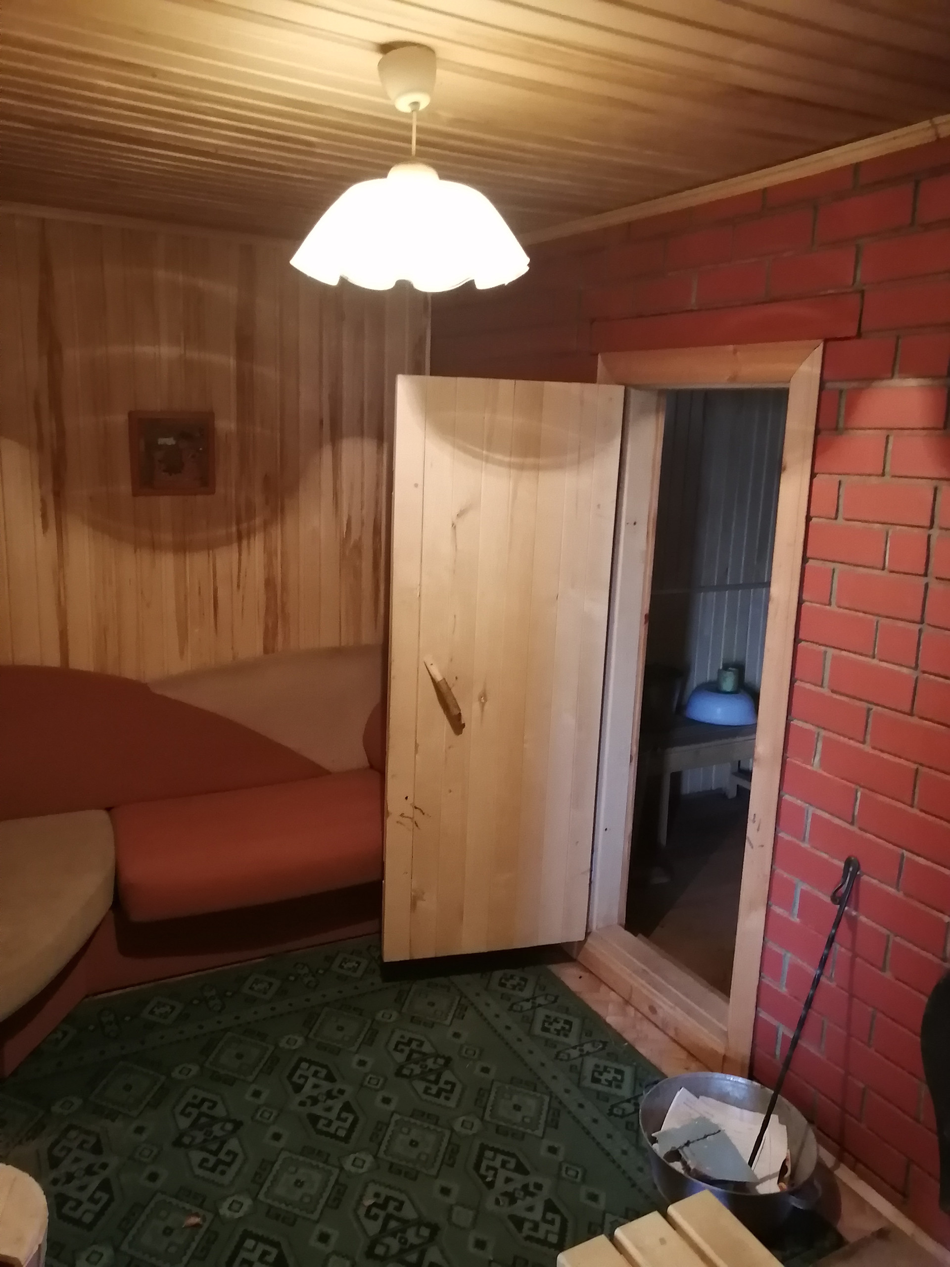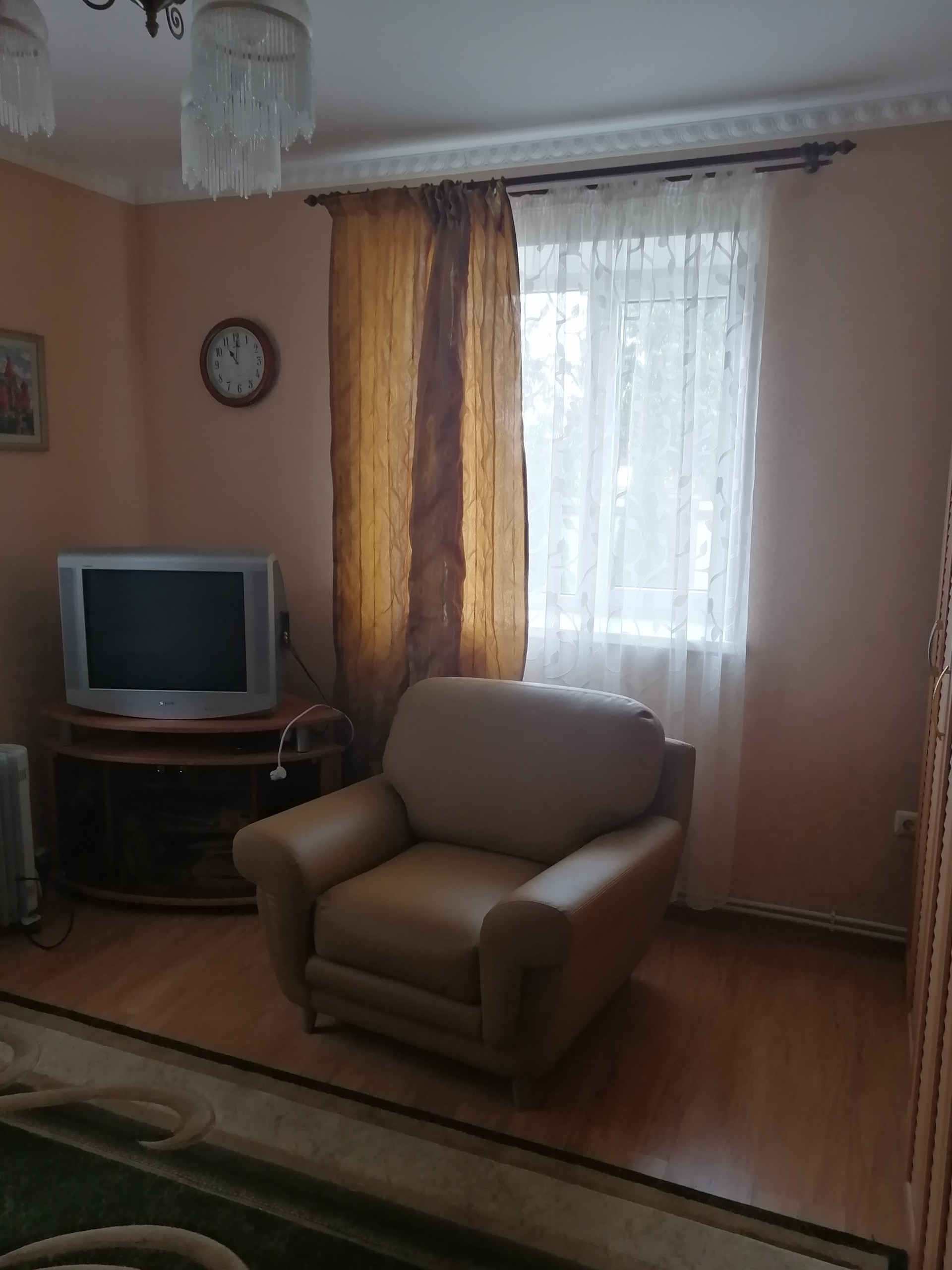 Дом построен из керамзитоблоков, с утеплителем и обложен кирпичом. На первом этаже гостиная, кухня и спальная комната. На втором этаже гостиная и две спальни.