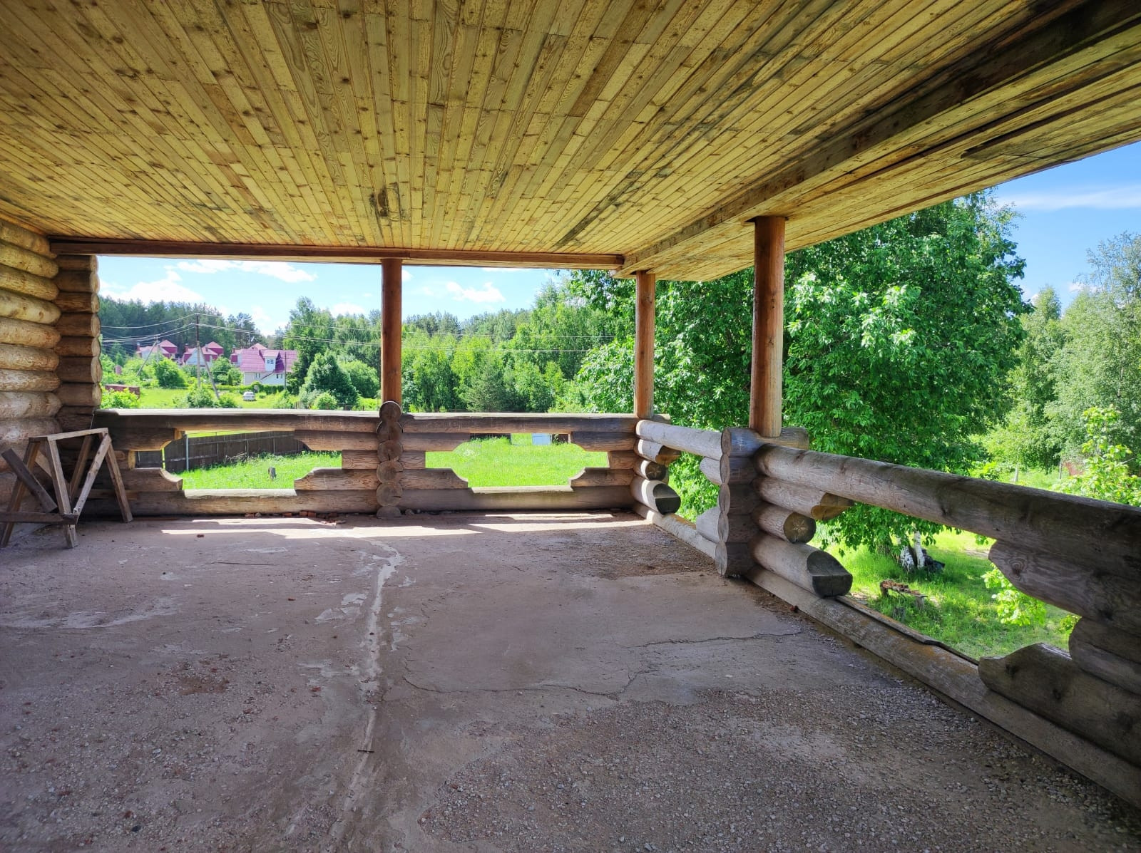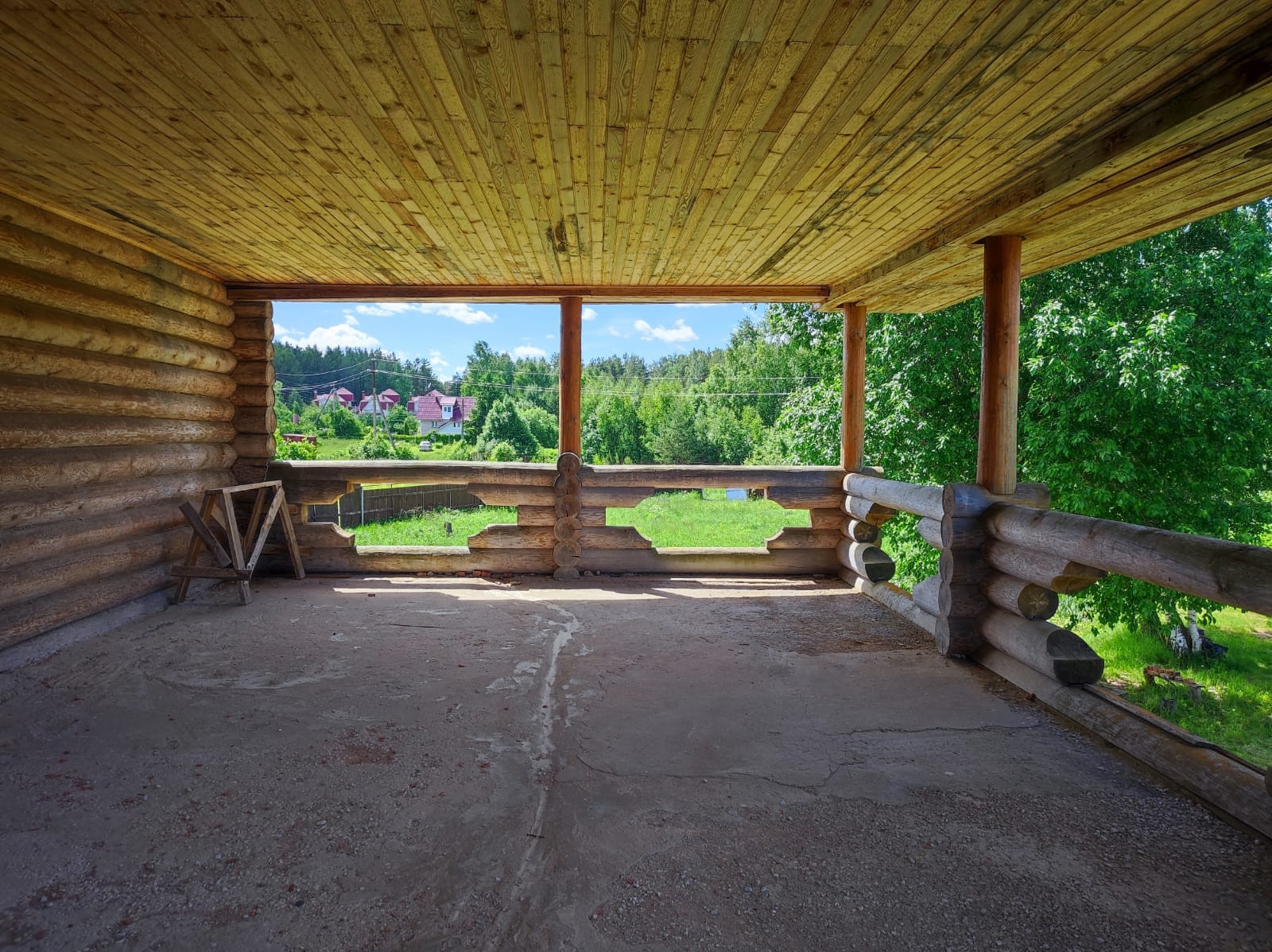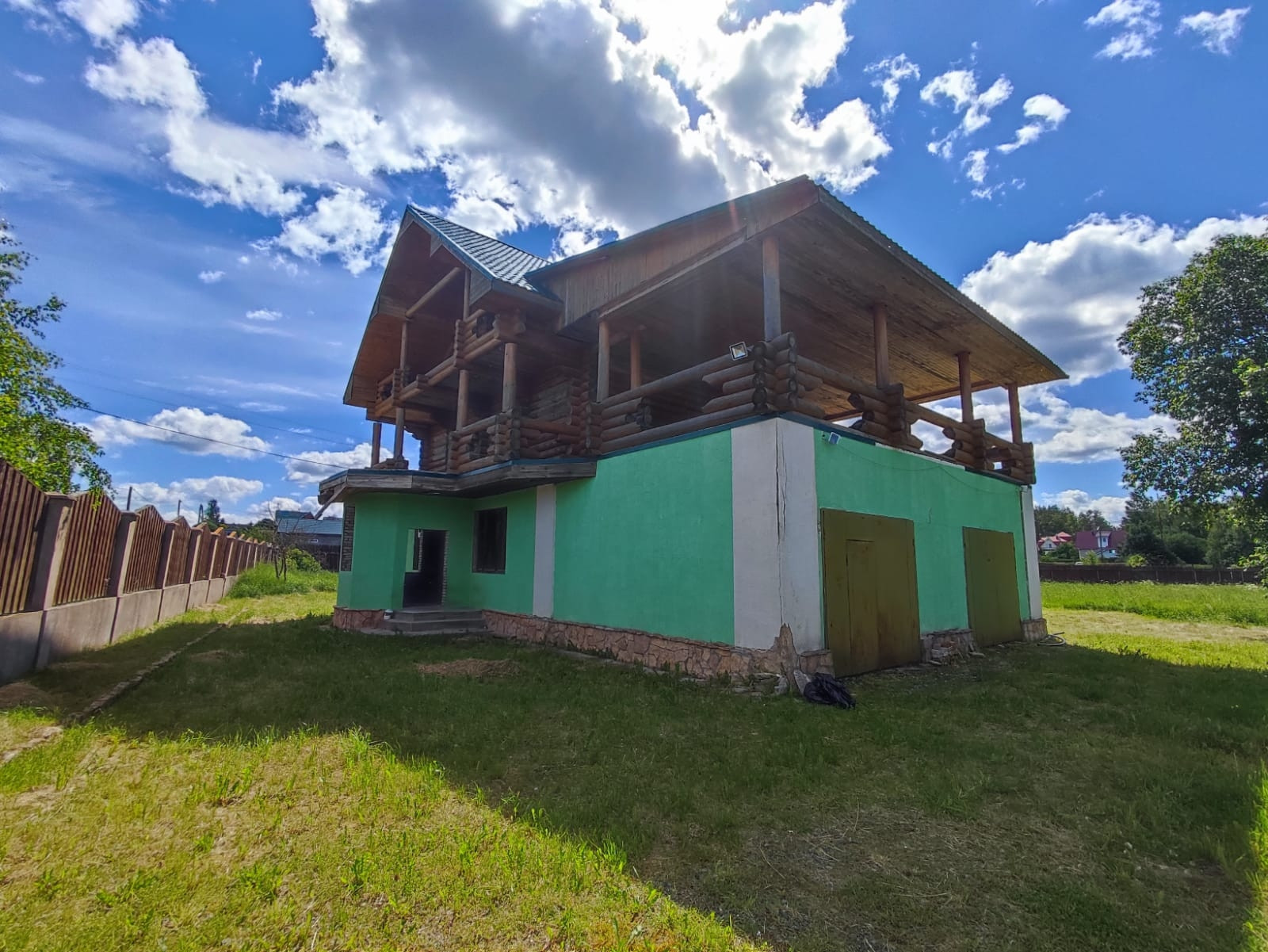 2 эт. Деревянный из оцилиндрованного бревна диаметром 26-30 и видовой терассой на озеро 50м.кв.