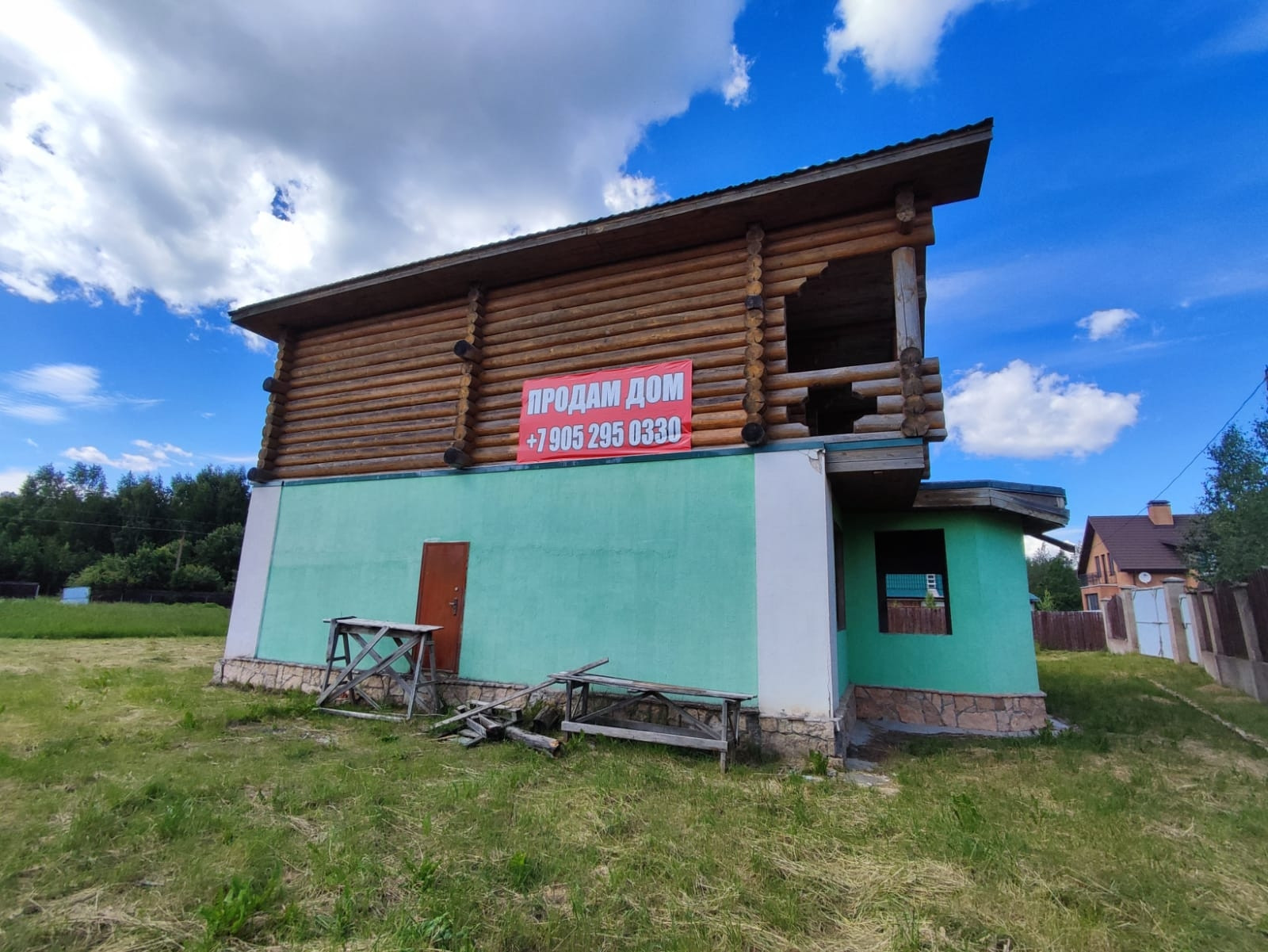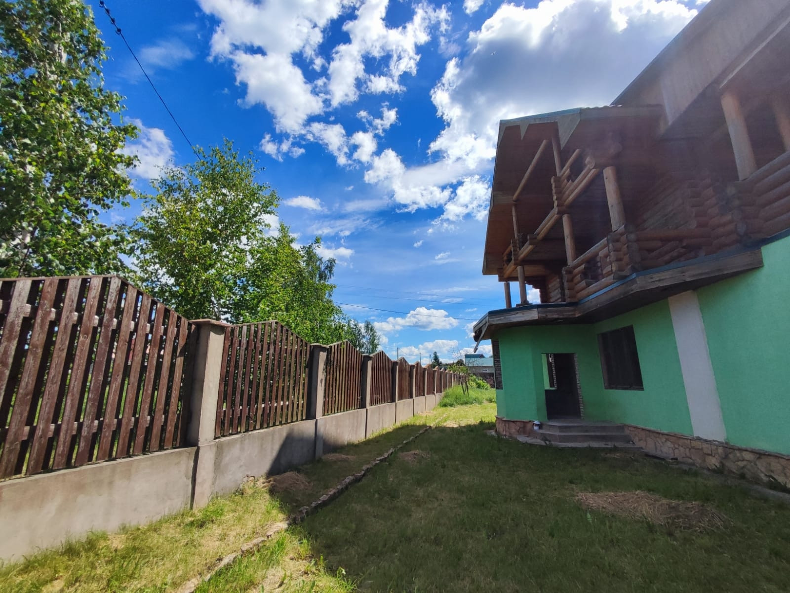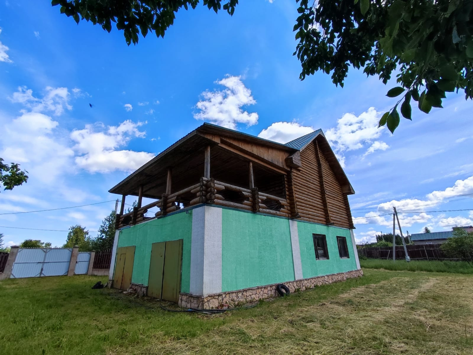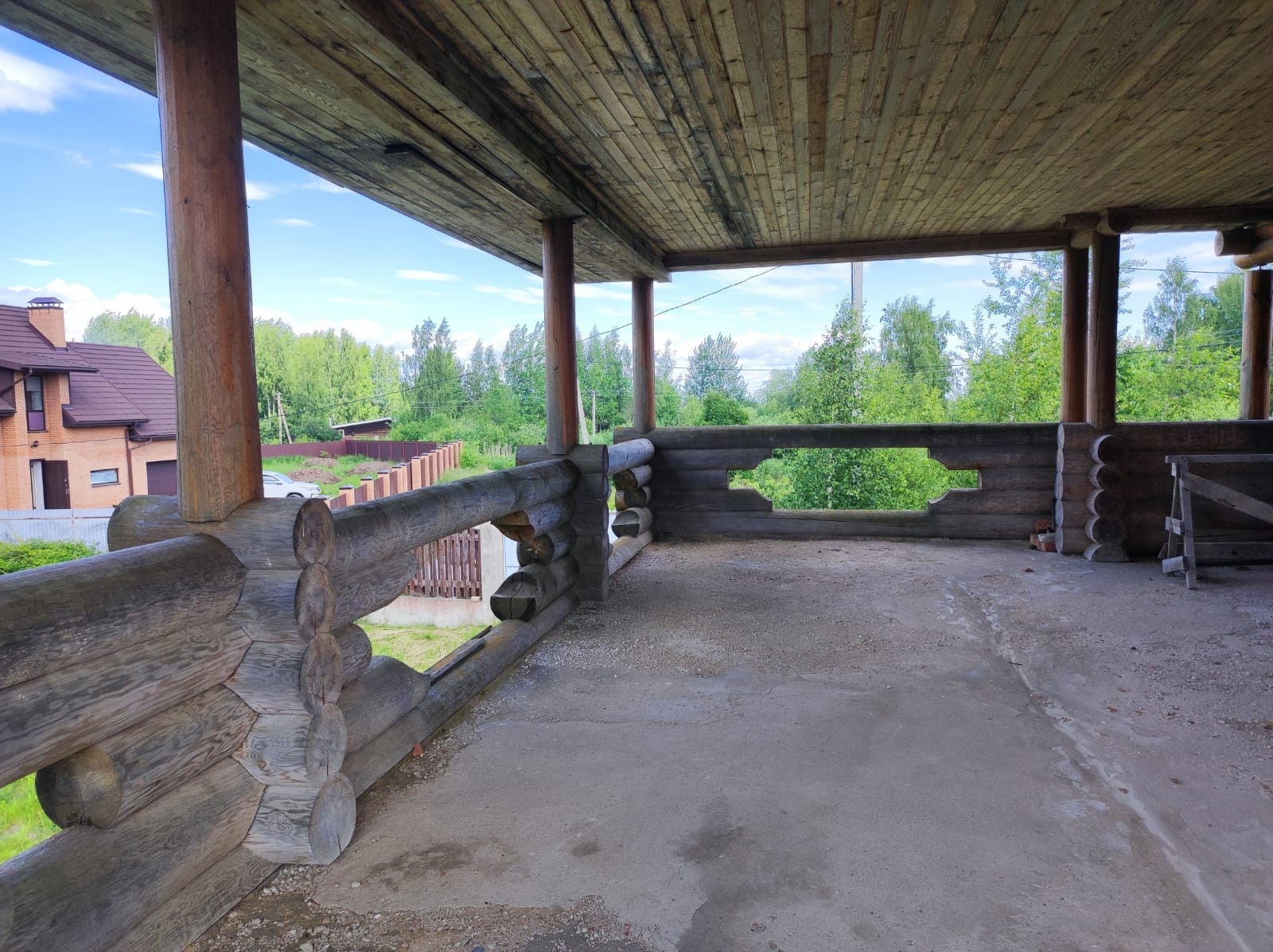2 эт. Деревянный из оцилиндрованного бревна диаметром 26-30 и видовой терассой на озеро 50м.кв.