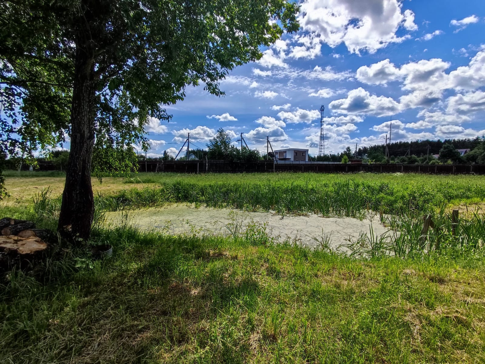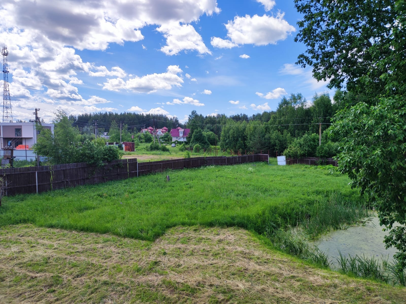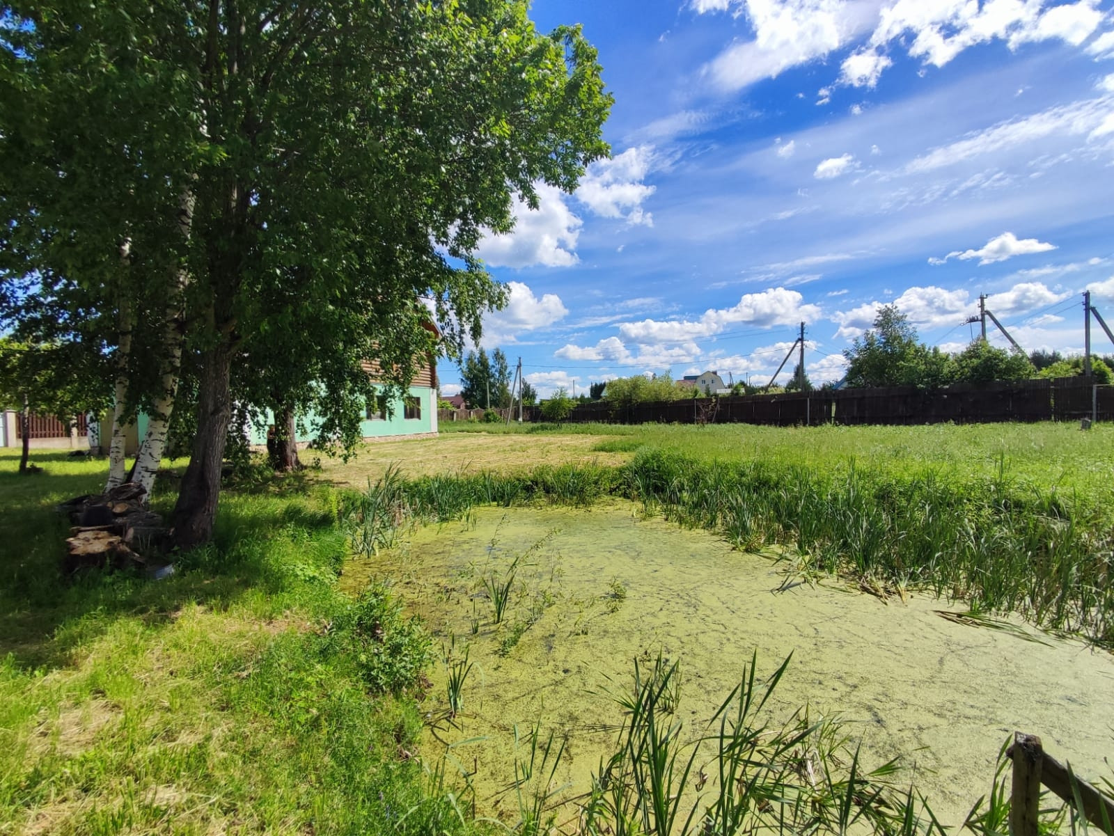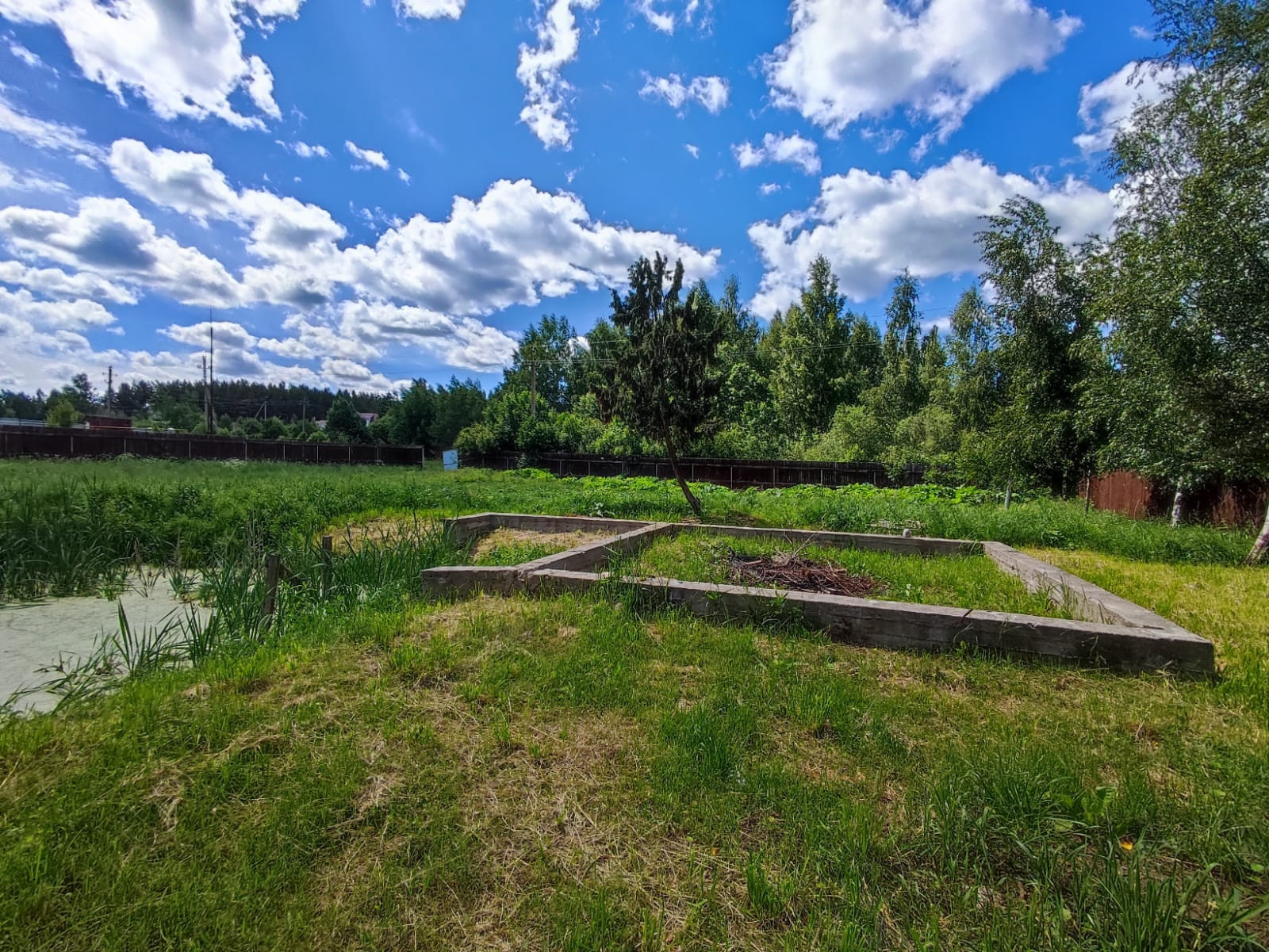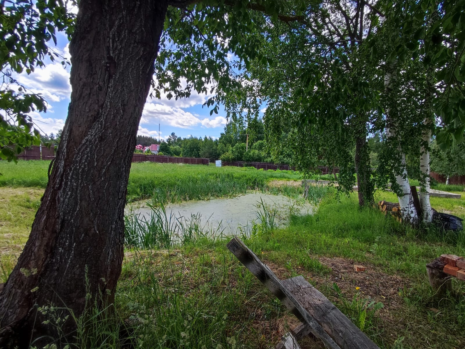 Участок ИЖС 20 соток огороженный забором с прудом на участке.
