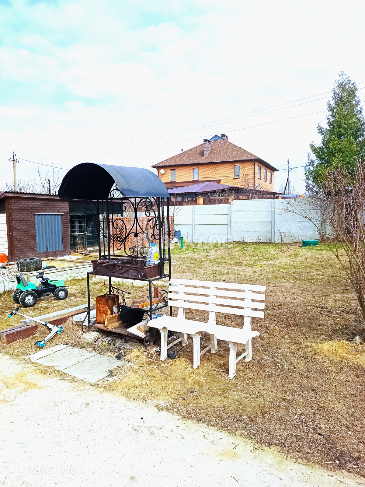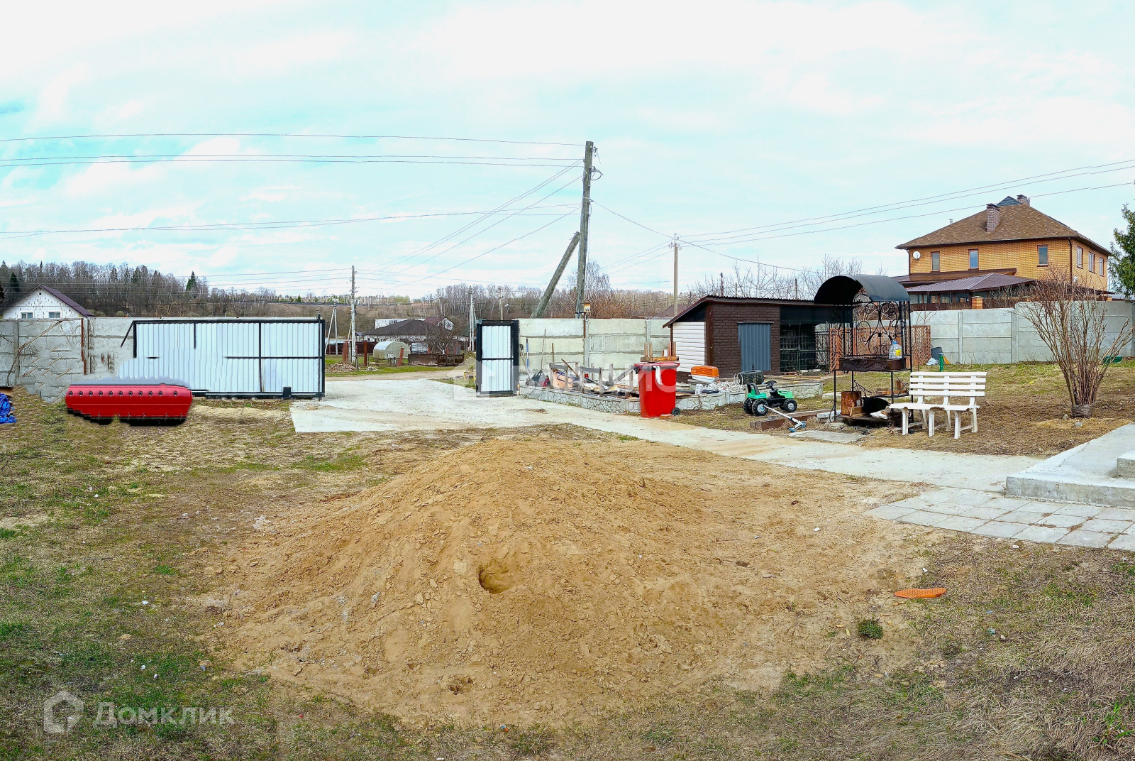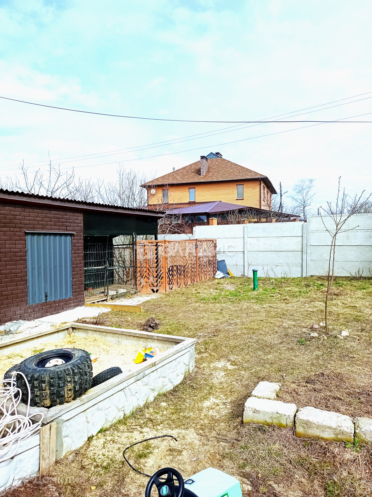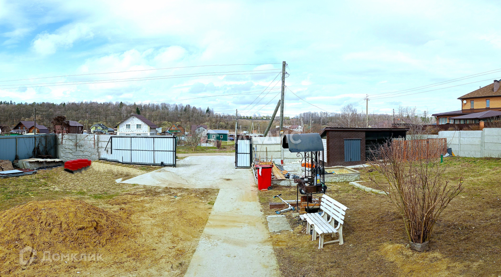 Хороший круглогодичный подъезд с двух сторон, огорожен и облагорожен, автоматические откатные ворота, барбекю зона, альпийская горка, посажены декоративные хвойные деревья, бетонированная стоянка под 6 авто., вольер.