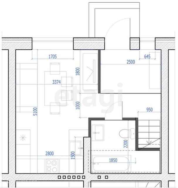 Общая площадь 55 м2