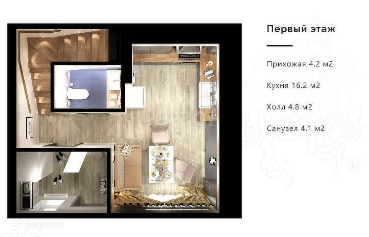 Общая площадь 55 м2