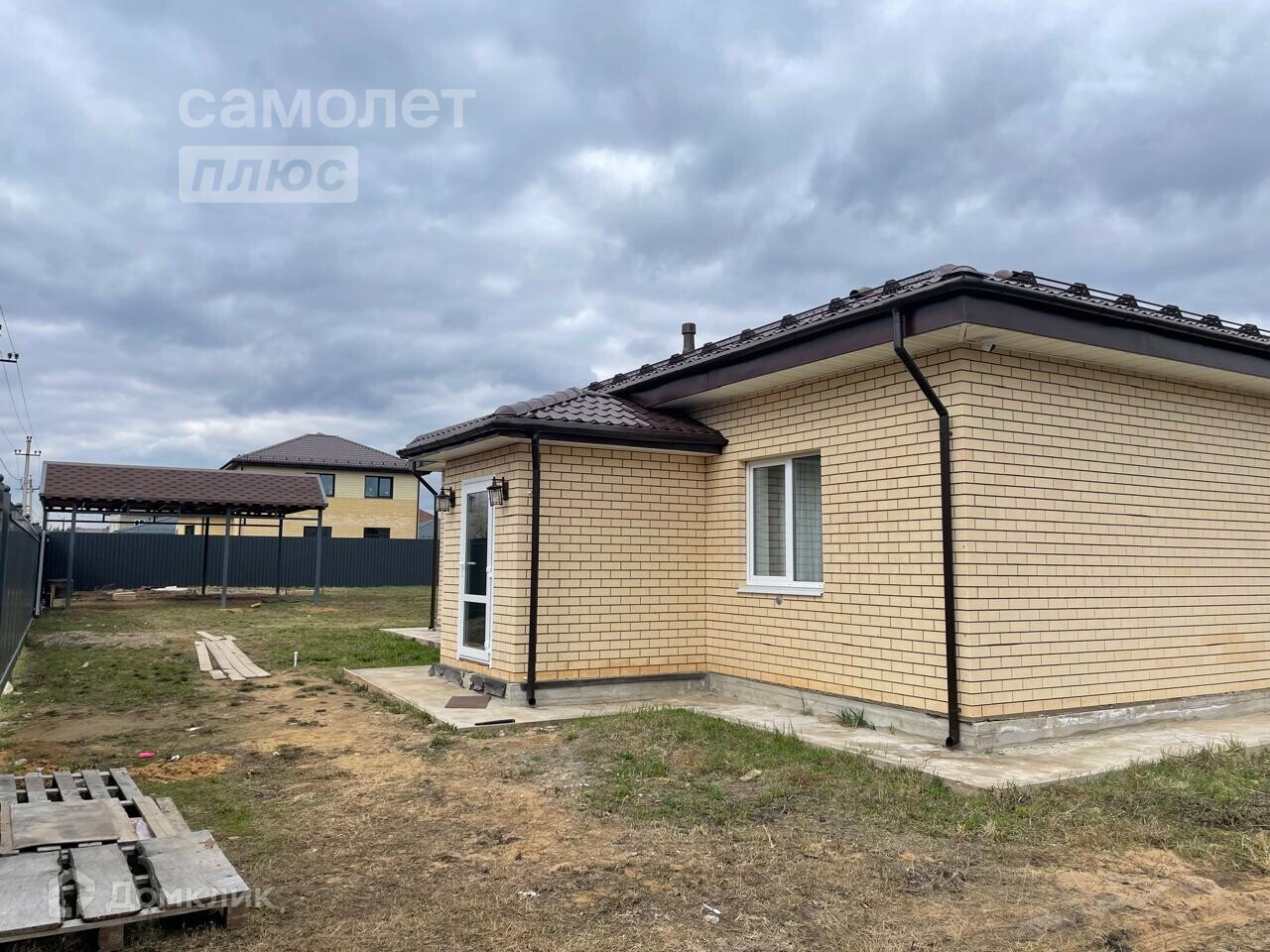 Стены выполнены из газосиликатного блока автоклавного производства марки D500, в виду чего дополнительного утепления стен не требуется. По фасаду стены отделаны силикатным кирпичом. Кровля – металлочерепица. На крыше смонтированы снегозадержатели, кровля вентилируемая. В доме 3 спальни, большая кухня-гостиная, большой совмещенный санузел, и техпомещение.