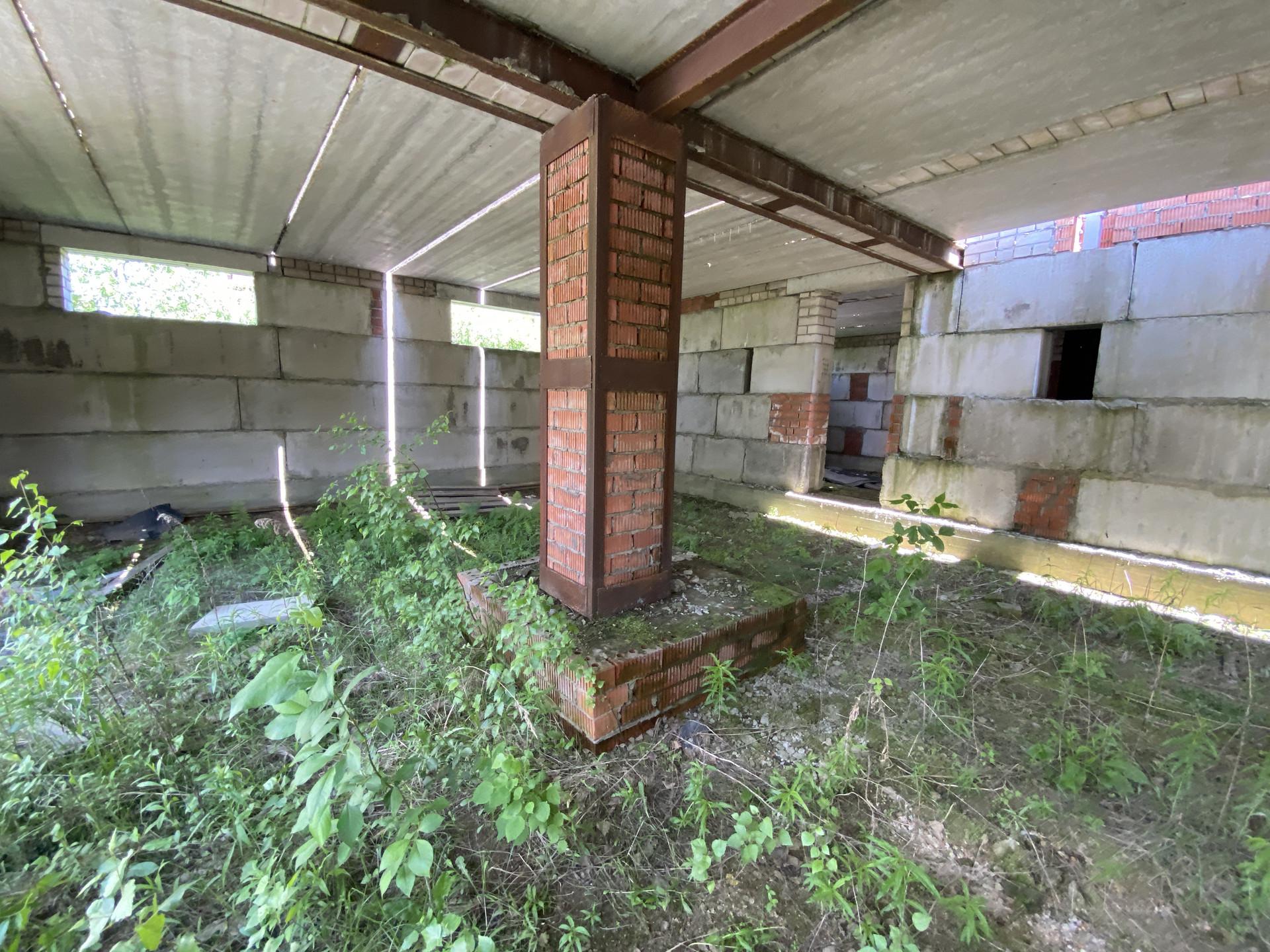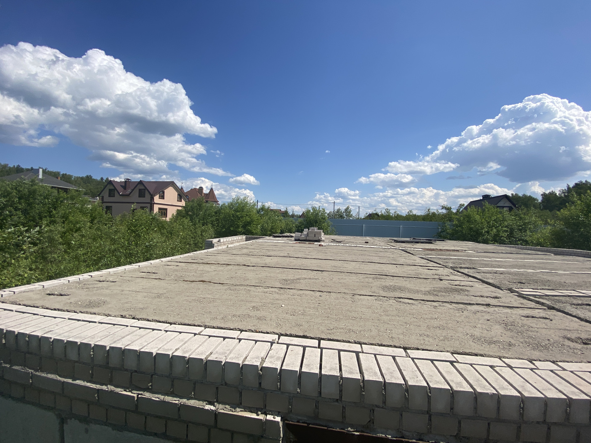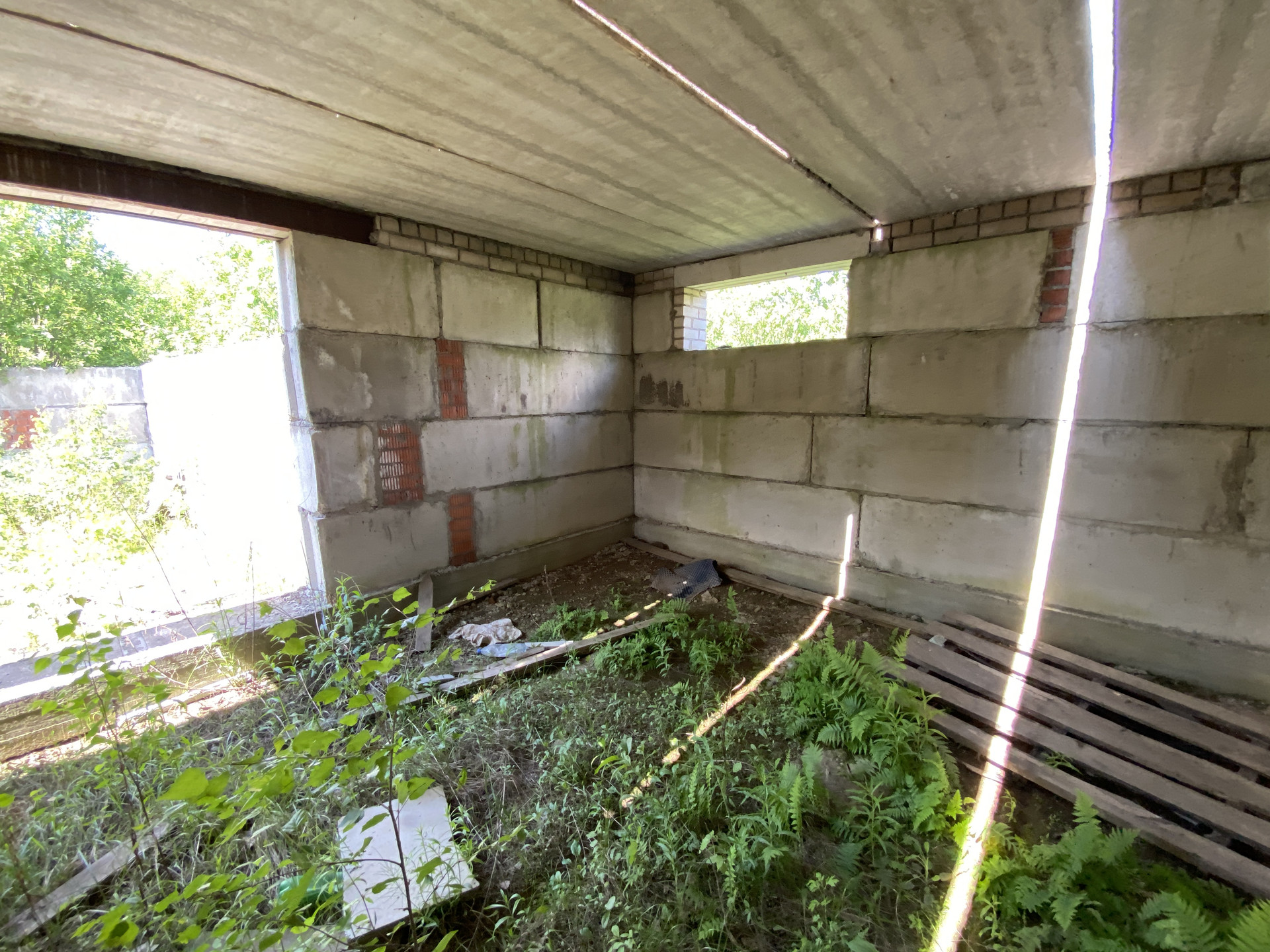 Земельный участок с фундаментом (цокольный этаж с гаражом на 2 а/м) из ФБС блоков. Перекрыт железобетонными плитами.