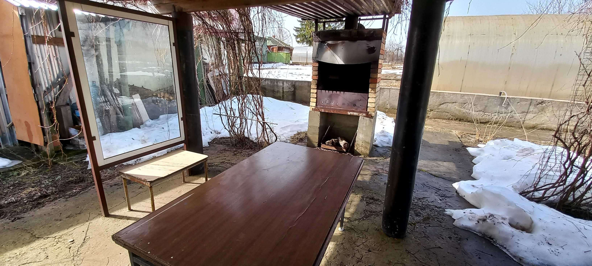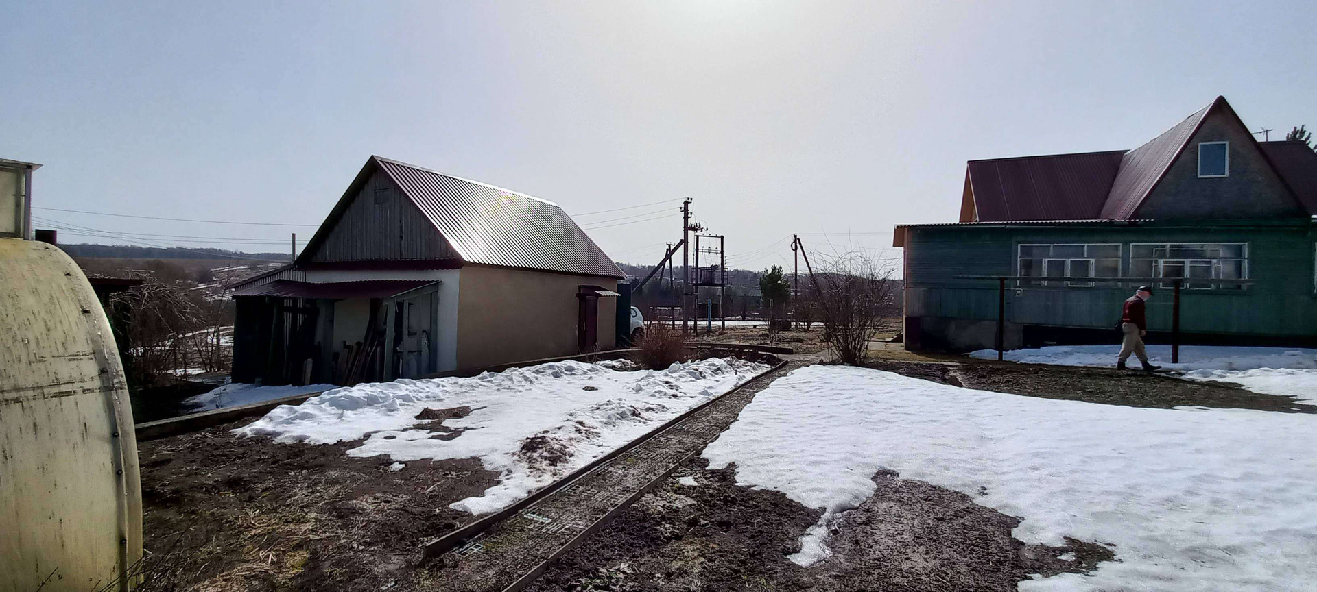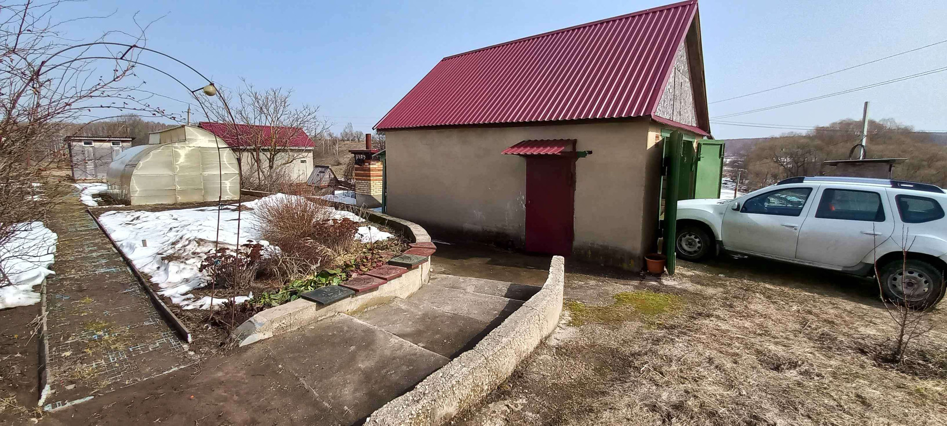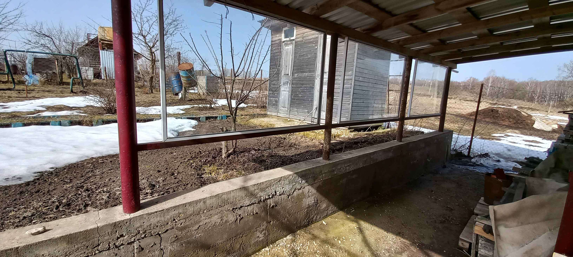 На территории построен капитальный гараж,площадью 60 м2.,с хозяйственной пристройкой. Весь садовый инвентарь размещался строго по назначению и имел свое место в строгом порядке.