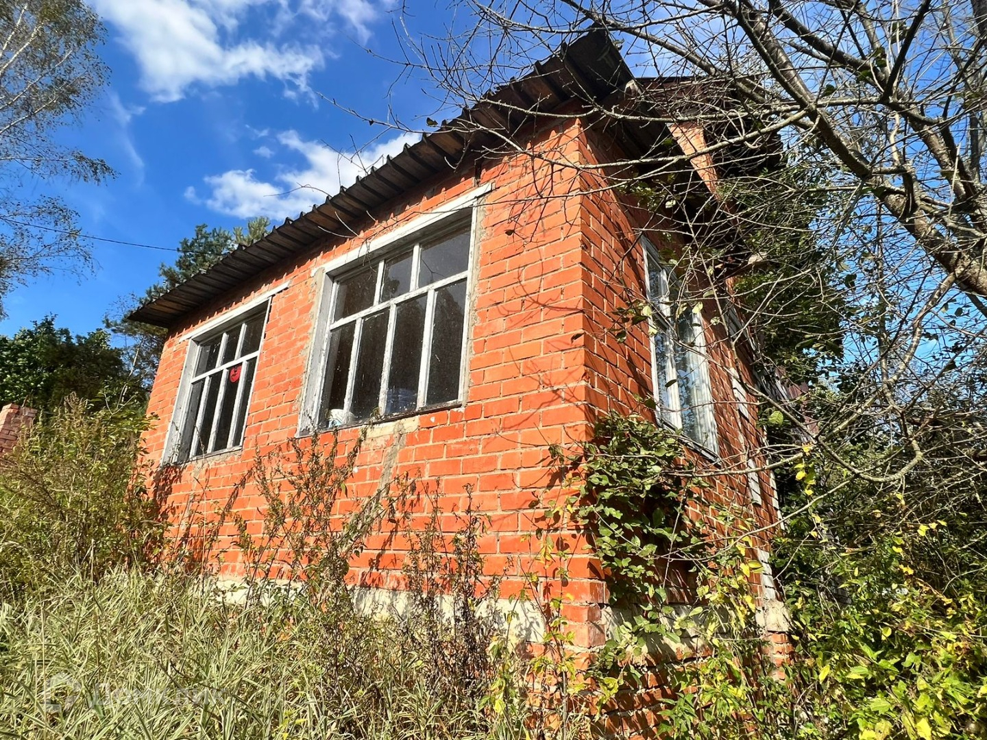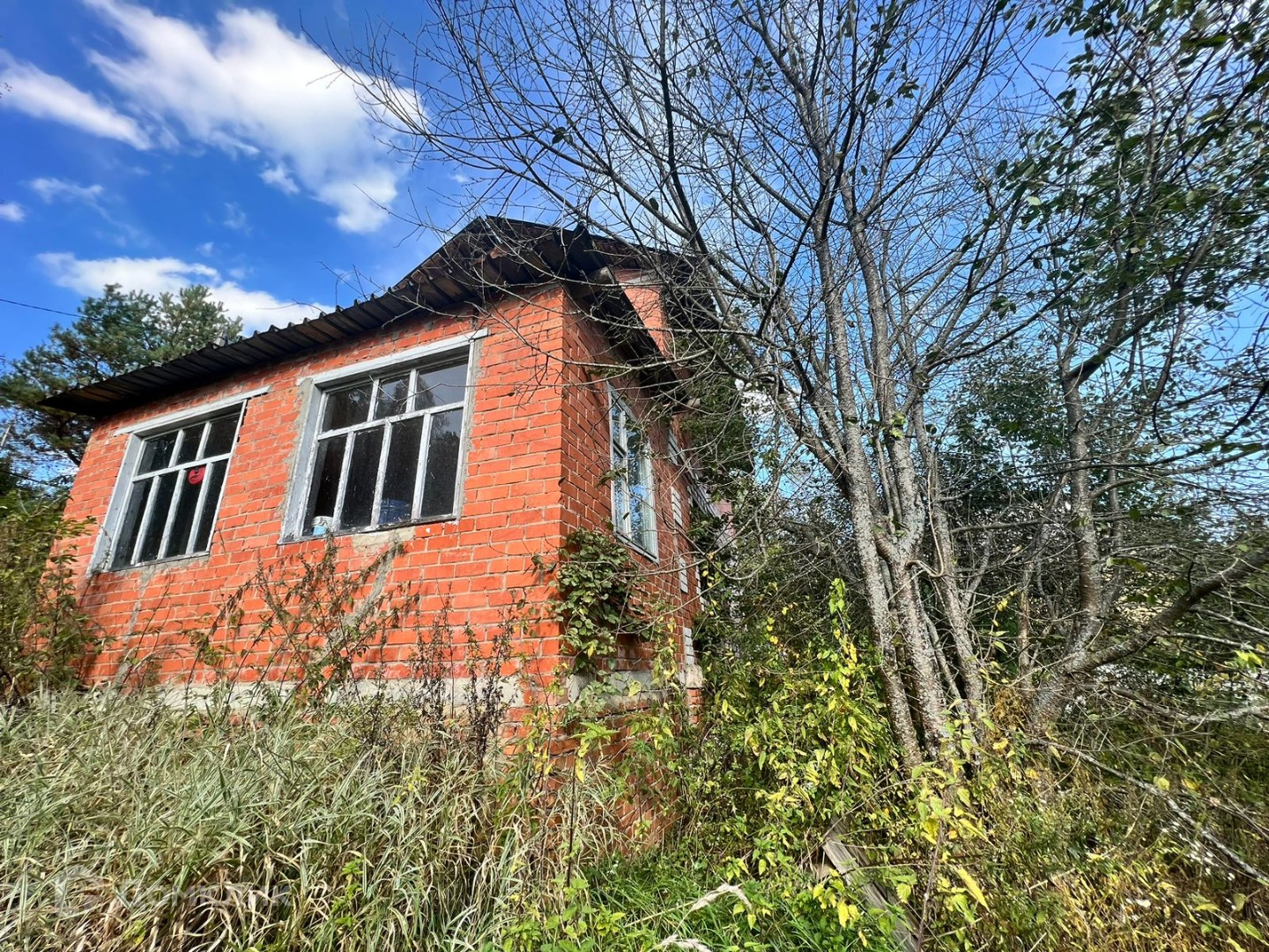 Дом: кирпич, 2 этажа, 3й мансарда. Требует отделки. Перекрытия ж/б плиты. Фундамент блоки. Электричество подключено, газ по границе(подготовлен проект)