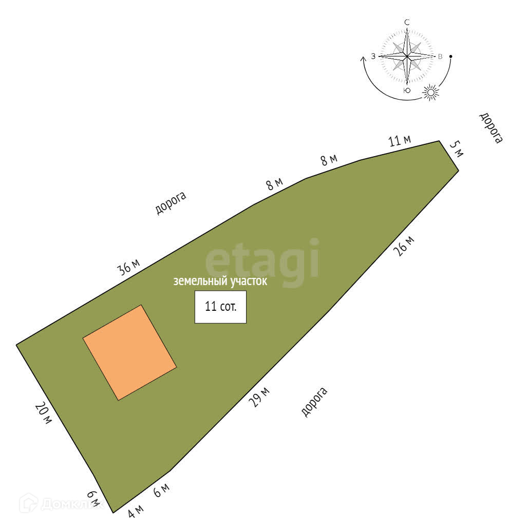 Площадь участка 11 сот.