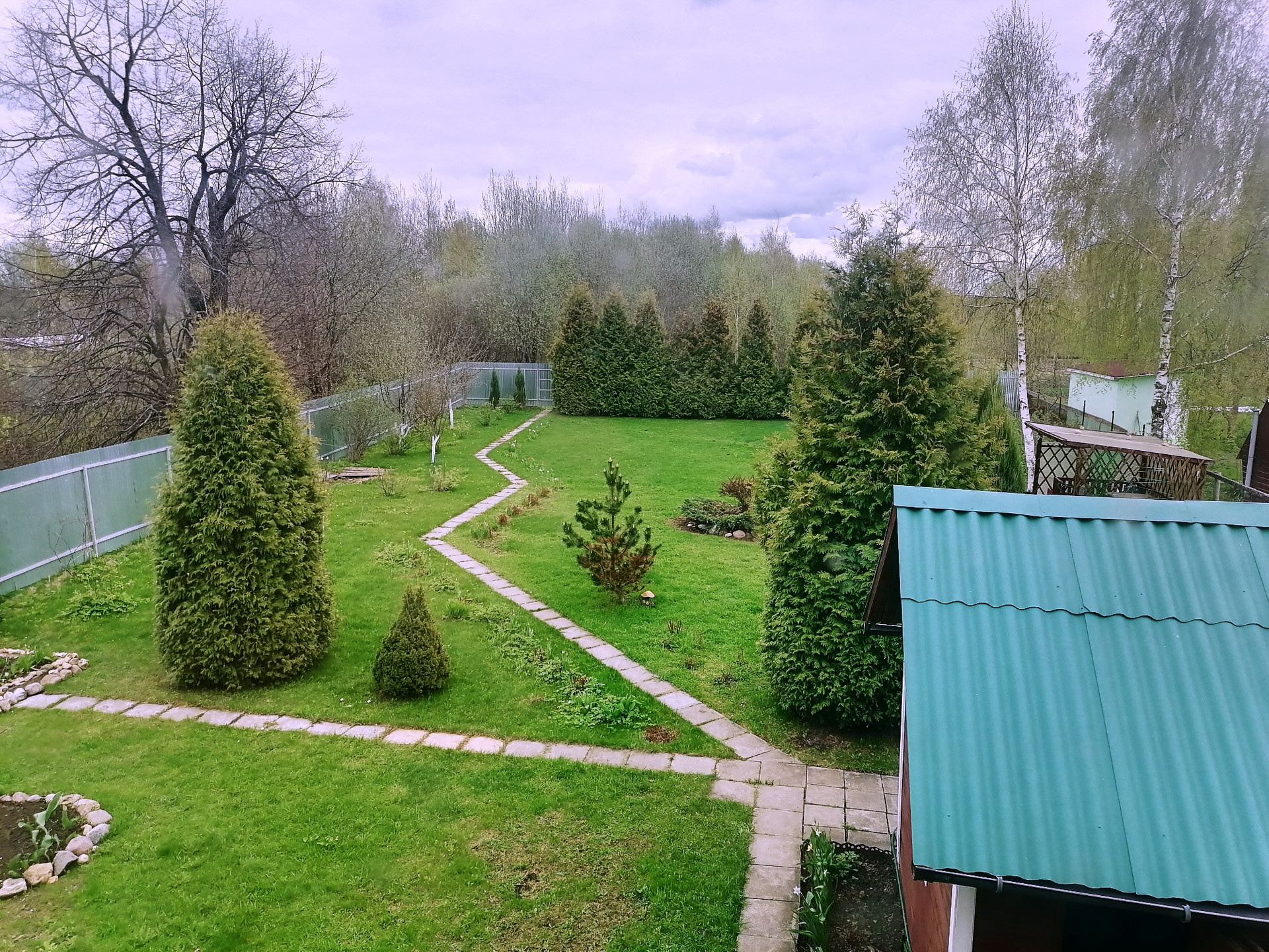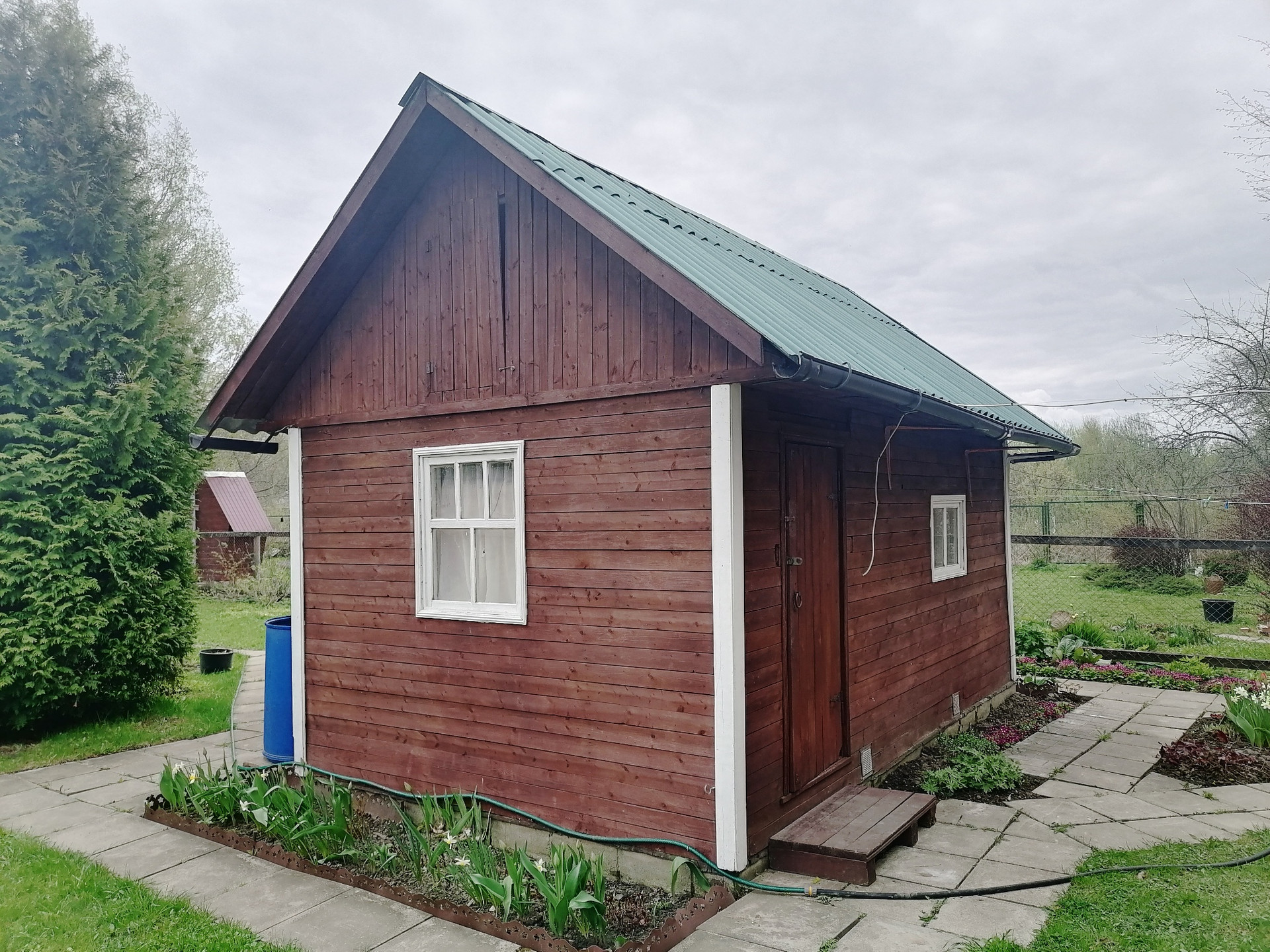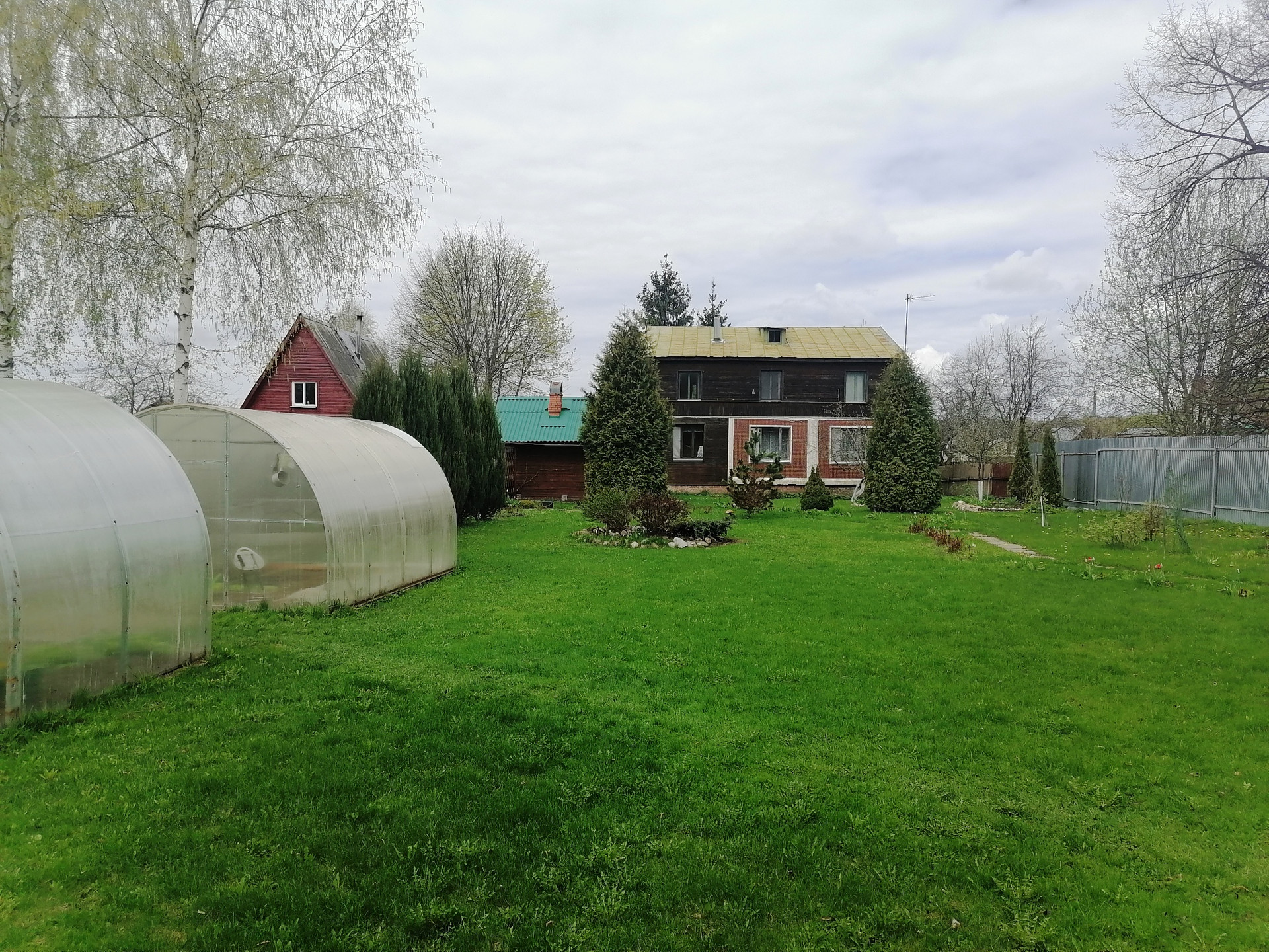 На красивом участке 14 соток с яблоневым садом и хвойными деревьями расположены следующие строения: Дом, баня, беседка, колодец, сад, теплицы, огород. Растут ягодные кустарники и плодовые деревья, ухоженный огород, теплицы, цветы и прочая растительность. Полноценный сад на 14 сотках по факту больше, с выходом в поле, лес и пруд. Очень уютный и зеленый участок с различной растительностью. Центральные тропинки выложены плиткой.