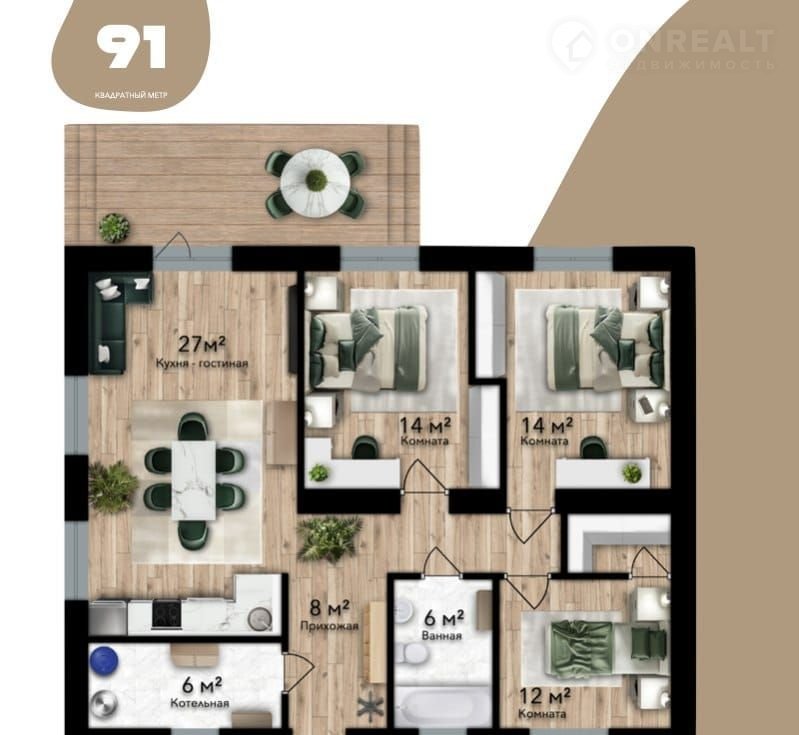 Общая площадь 91 м2
