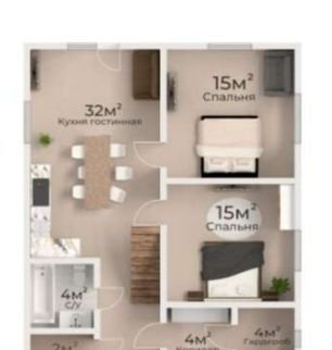 Дом общей площадью 130 м2.  Планировка:  Первый этаж: гардеробная, бойлерная, кухня-гостиная, 2 спальни, санузел.  Второй этаж свободная планировка , можно сделать еще три спальни