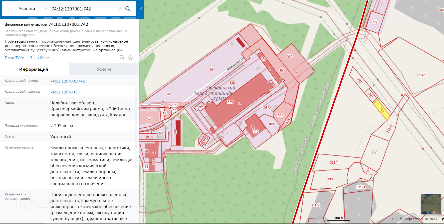 Продается Земельный участок промышленного назначения (как категория так и разрешенное использование) кад. номер 74:12:1207001:742. В непосредственной близости завод Кемма. От участка более 500 метров нет жилых застроек.