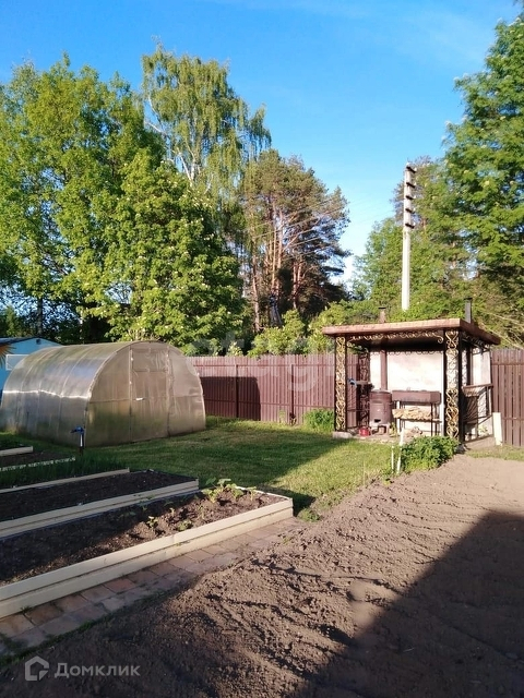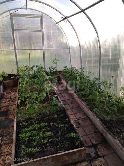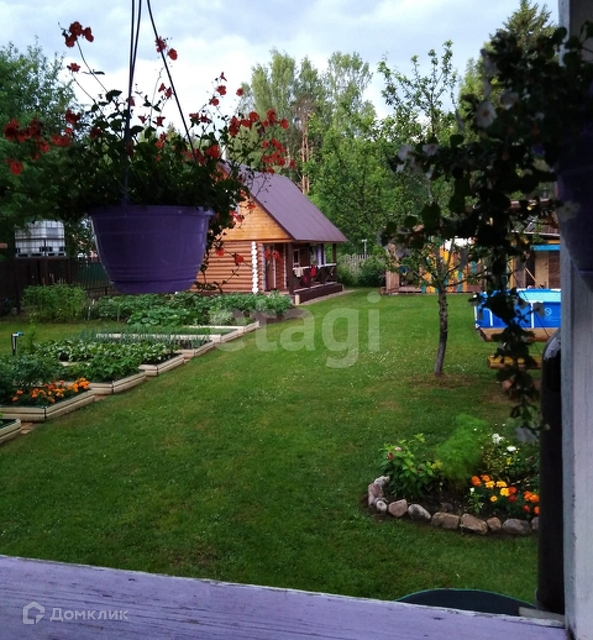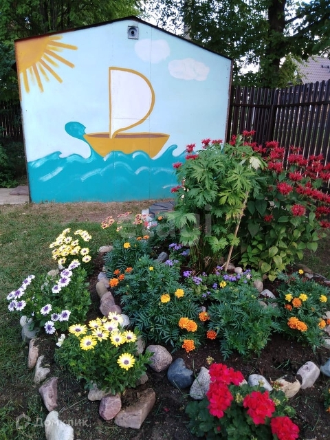 На участке также имеется гараж и две хозпостройки. Территория участка огорожена забором, площадь 8 соток.. Участок размежеван, разработан, летом разбиты клумбы с цветами и грядки, имеется теплица.