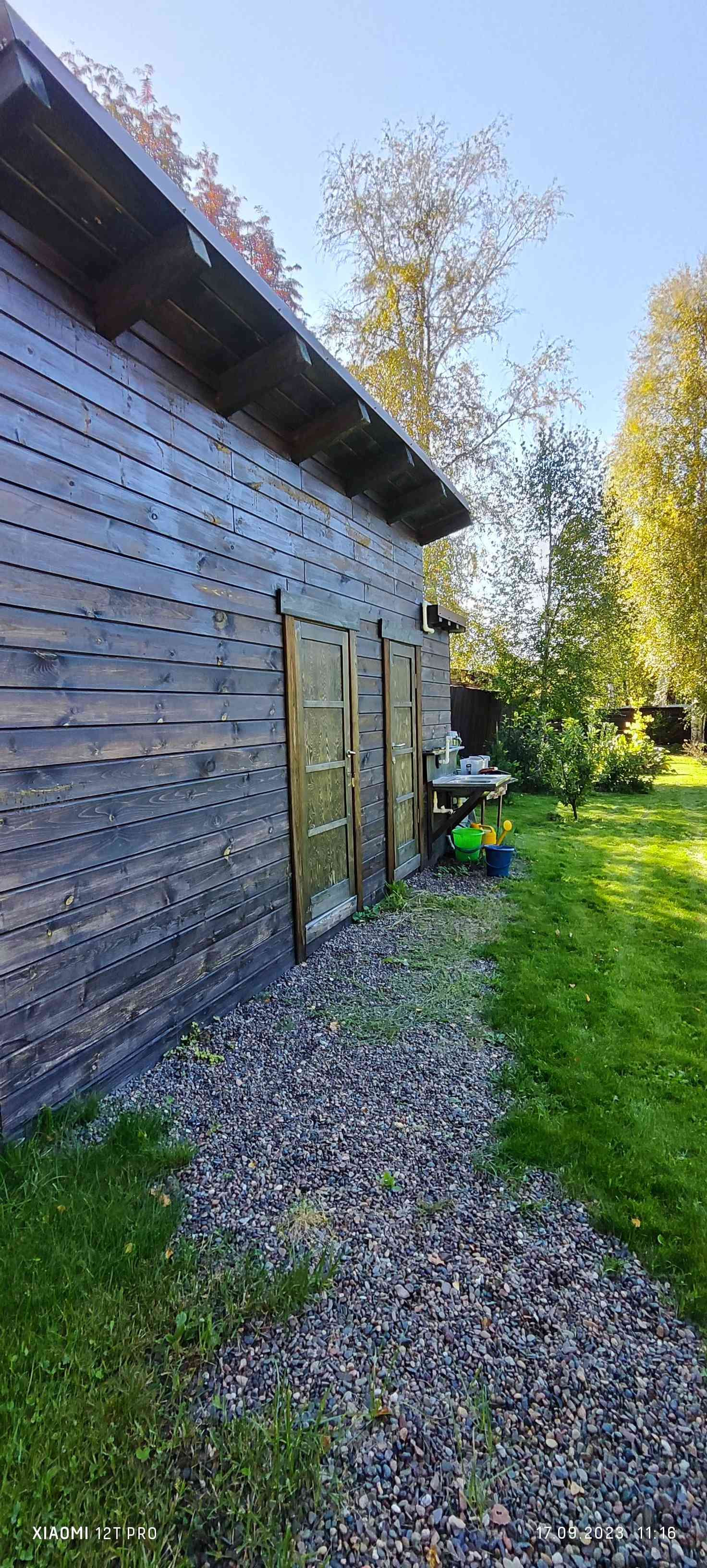 Дом( баня) с террасой , одноэтажный с теплой мансардой. Баня обшита вагонкой.в бане имеется душ , вода поддается по трубам из скважины.В общей постройке дома есть мастерская стены обшиты ОСП.дом построен из бруса с утеплением стен минватой, мансардный этаж-каркасные, стены и крыша утеплены минватой. Мастерская -каркасная утеплена минватой.Год постройки 2016. фундамент дома- ленточный.материал перекрытий -деревянные. состояние хорошее. есть скважина, септик, электроснабжение. Отопление -электро обогреватель и печное . На территории есть гараж 44.6 м. кв. 2018 года постройки. Стены пенобетон, штукатурка.Есть электроснабжение и погреб. На территории есть сарай с уличным туалетом и летним душем.На участке газон и деревья.