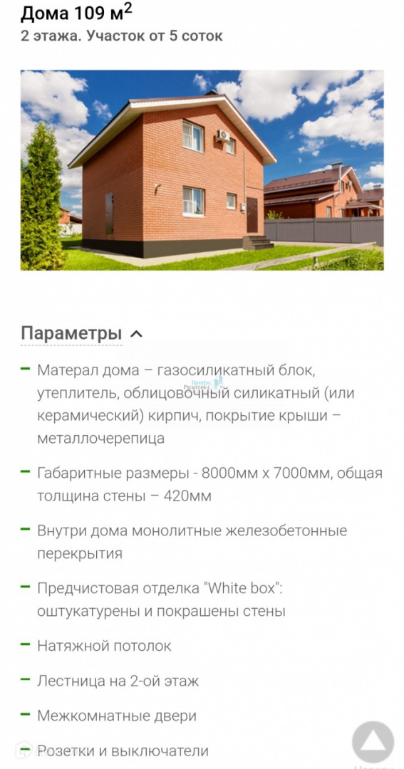Арт. 25281404 Продаётся НОВЫЙ 2-х этажный дом.  Общая площадь 109 кв.м площадь комнат 13.5+13.7+9.8 на втором этаже + санузел, гостиная 26.7 кв.м + кухня + санузел прихожая - первый этаж. Отделка предчистовая White box. Центральная вода, канализация, газ, отопление. Площадь участка 5 сот.  Дом построен, документы получены. Дом крайний соседи только с одной стороны.