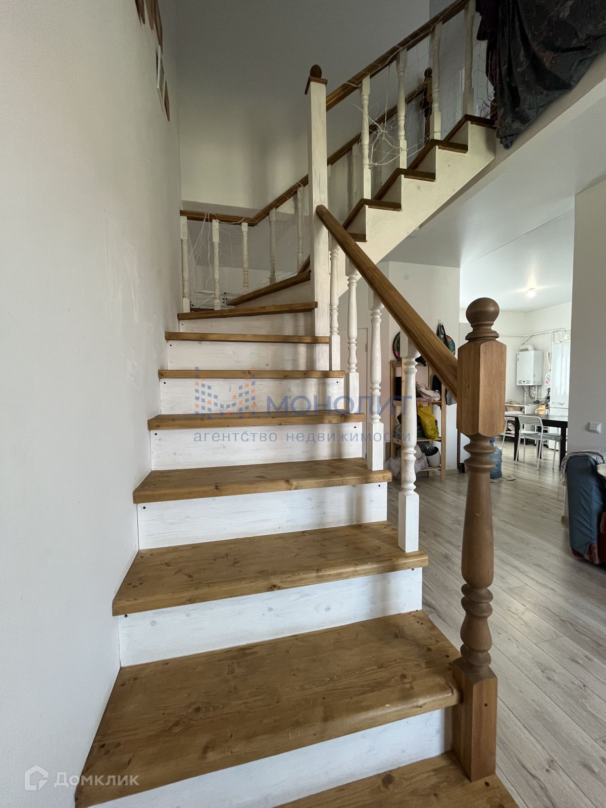 - Лестница-деревянная, развёрнутая таким образом, чтобы в прихожей убрался полноценный гардероб.