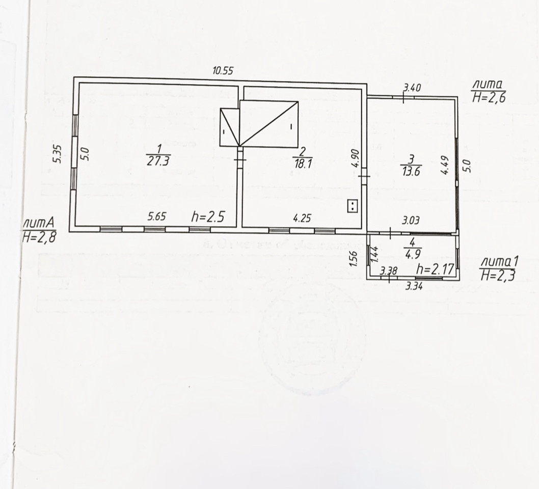 Жилая площадь - 27,3 кв.м