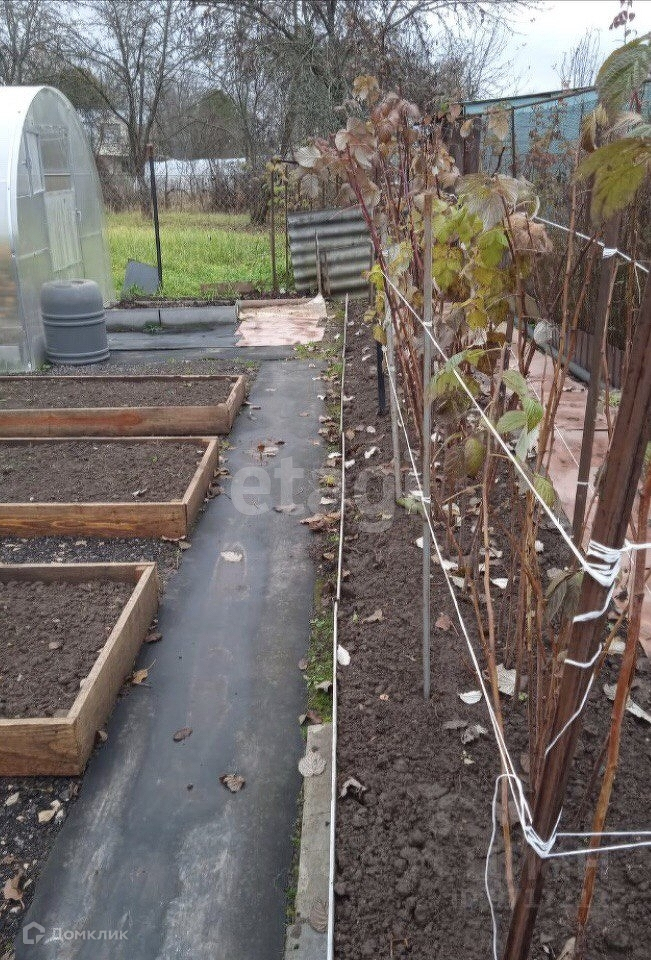 В саду:клубника,малина,смородина чёрная,крыжовник, жимолость, яблони,груши,вишни,сливы. Очень много декоративных растений: розы, лилейники, клематисы, пионы, лаванда, самшиты, спиреи, хризантемы. Большие хвойные: сосны, туи, можжевельник. Теплица из поликарбаната. Дорожки и площадки (патио, перед домом, перед баней) выложены плиткой, парковка отсыпана. По периметру сетка-рабица, от дороги металлические штакетник, ворота, калитка.