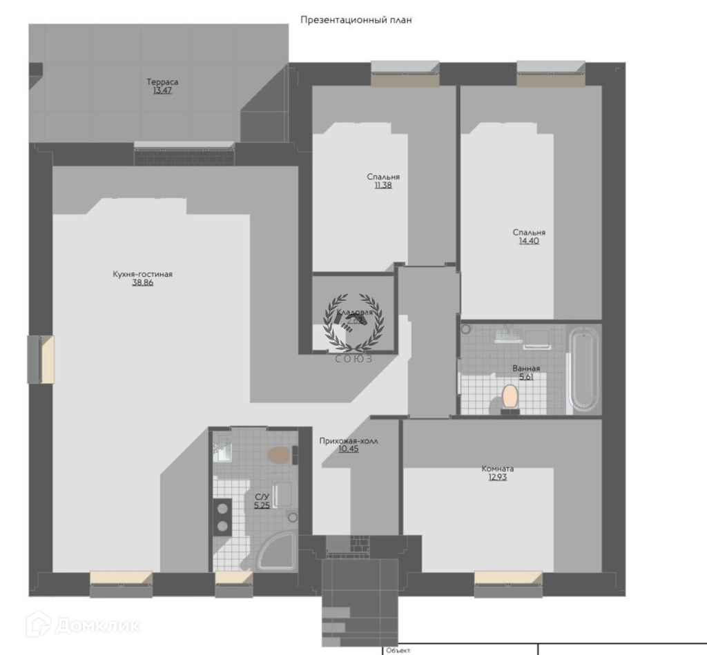 Площадь кухни 38.86 м2