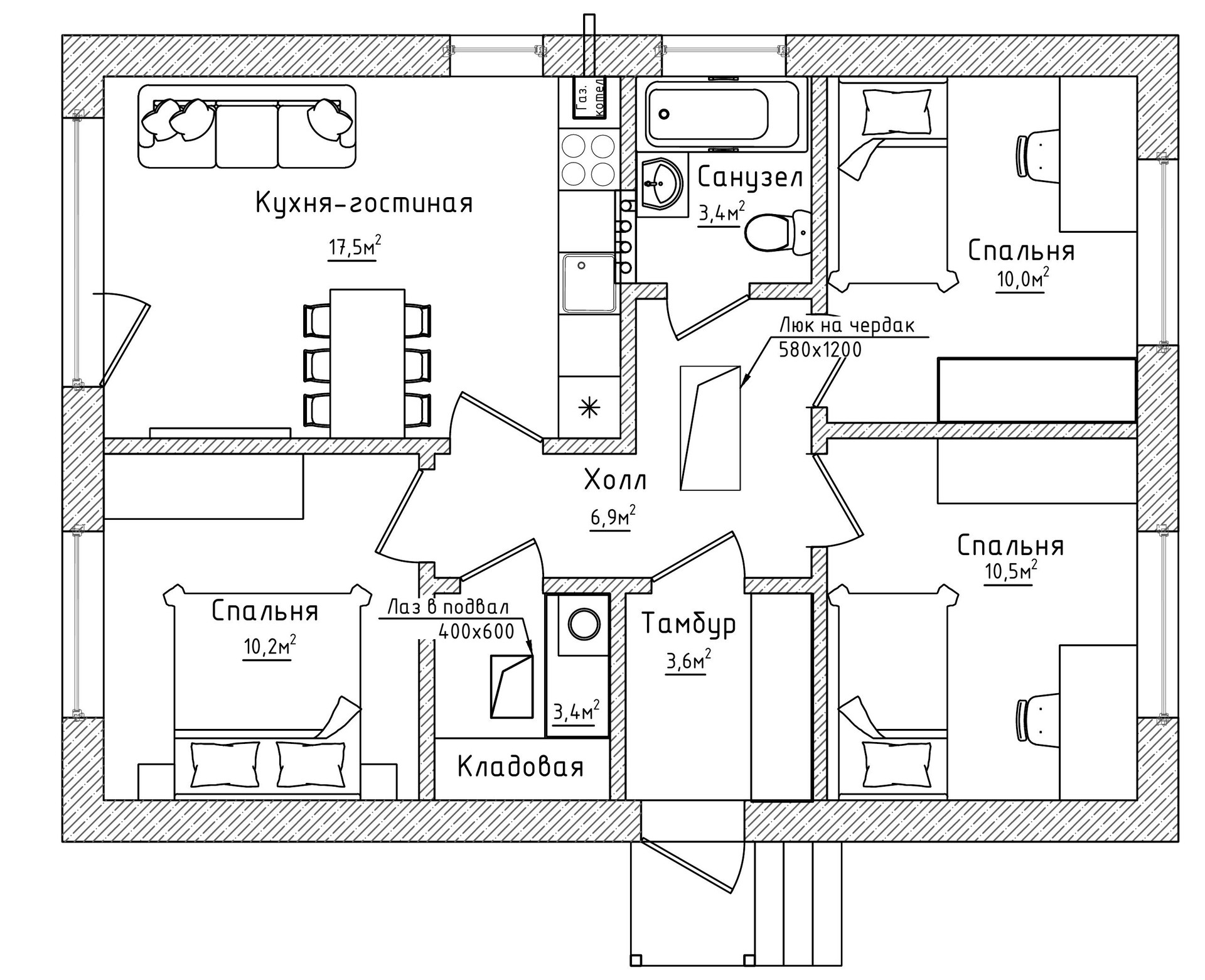 Общая площадь 70 м2