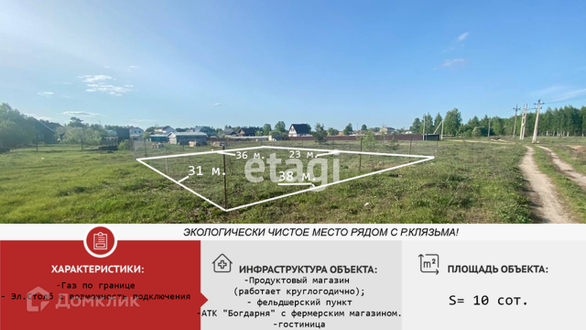 Ищите ИДЕАЛЬНОЕ МЕСТО для Постройки ДОМА СВОЕЙ МЕЧТЫ ??? Вашему вниманию участок 10 сот. в экологически чистом и ухоженном районе в дер. Крутово Петушинского района. Подъезд к участку круглогодичный, асфальт. Рядом лес с ягодами и грибами. Вблизи р. Клязьма. Идеальное место для рыбалки и для отдыха с детьми и друзьями. Неподалеку находится красивый храм. По улице проведён газ, электроснабжение присутствует. В пешей доступности находится продуктовый магазин, дом культуры, детская площадка.