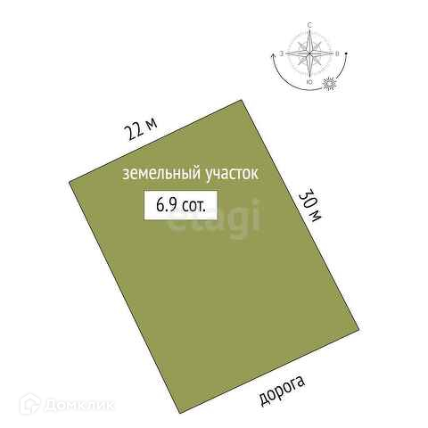Площадь участка 6.9 сот.