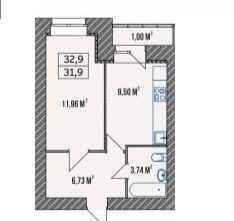 Общая площадь 32.9 м2