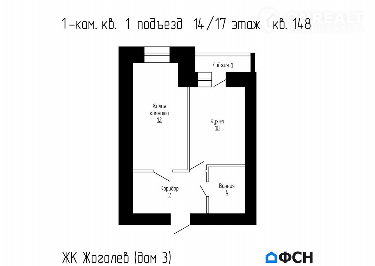 1-комнатная квартира, 33.9 м2, этаж 14 / 17, на продажу в деревне Крутые Выселки, проспект Космонавтов, 3