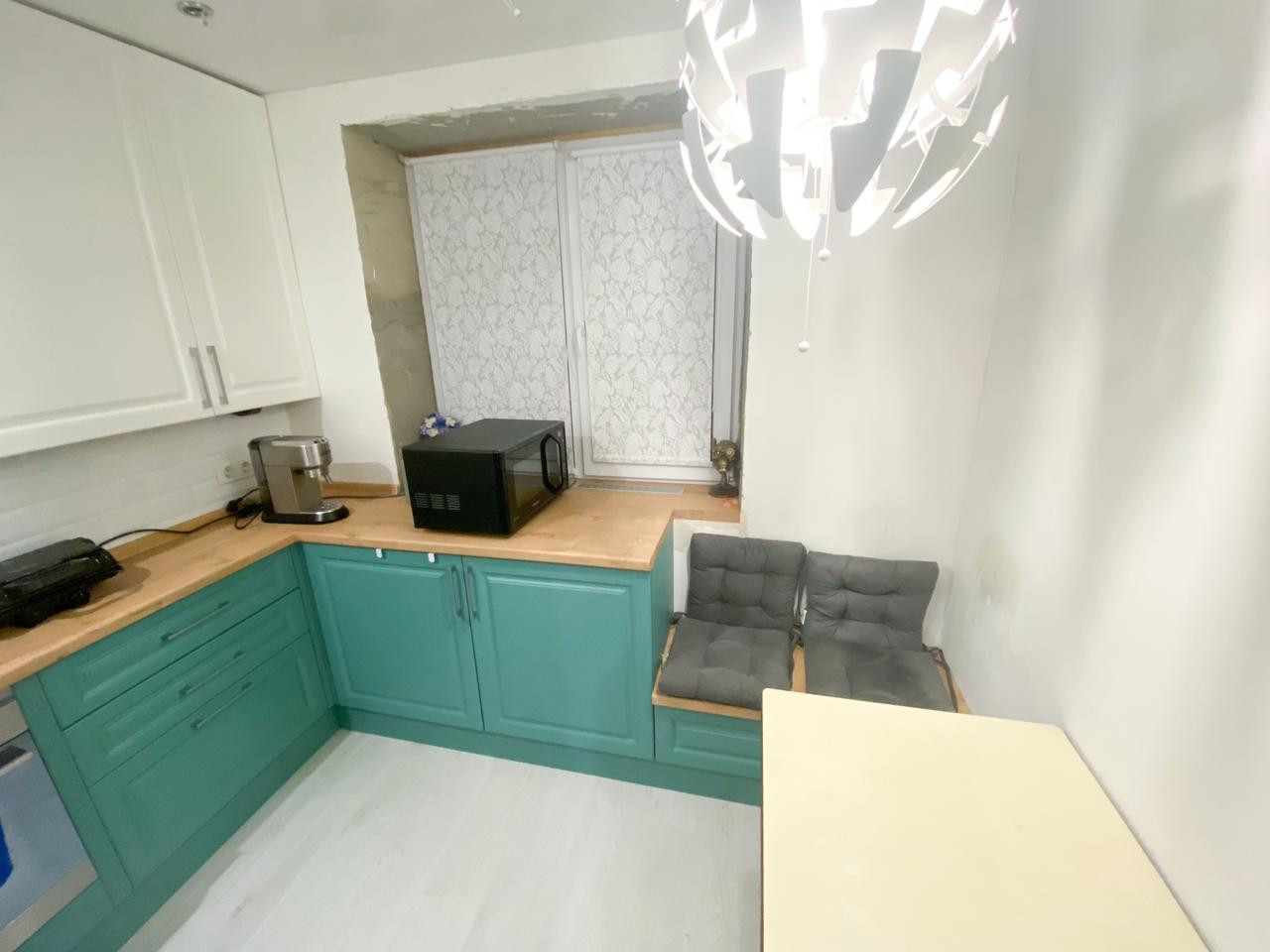 - В квартире остаются: кухонный гарнитур со встроенной техникой (вытяжка, варочная панель и духовой шкаф).